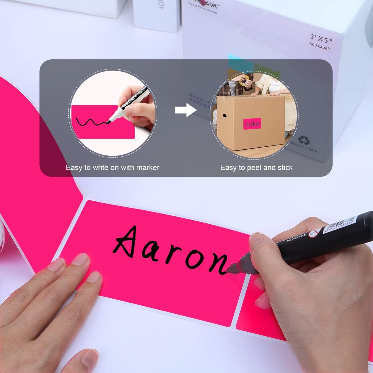 PARLAIM 5" x 3" Rectangle Color Coding Labels,500 per Inventory Labels Color Code Stickers Dispenser Box,Sticker Labels for Inventory &Family School Storage Bins Label (Fluorescent Pink)