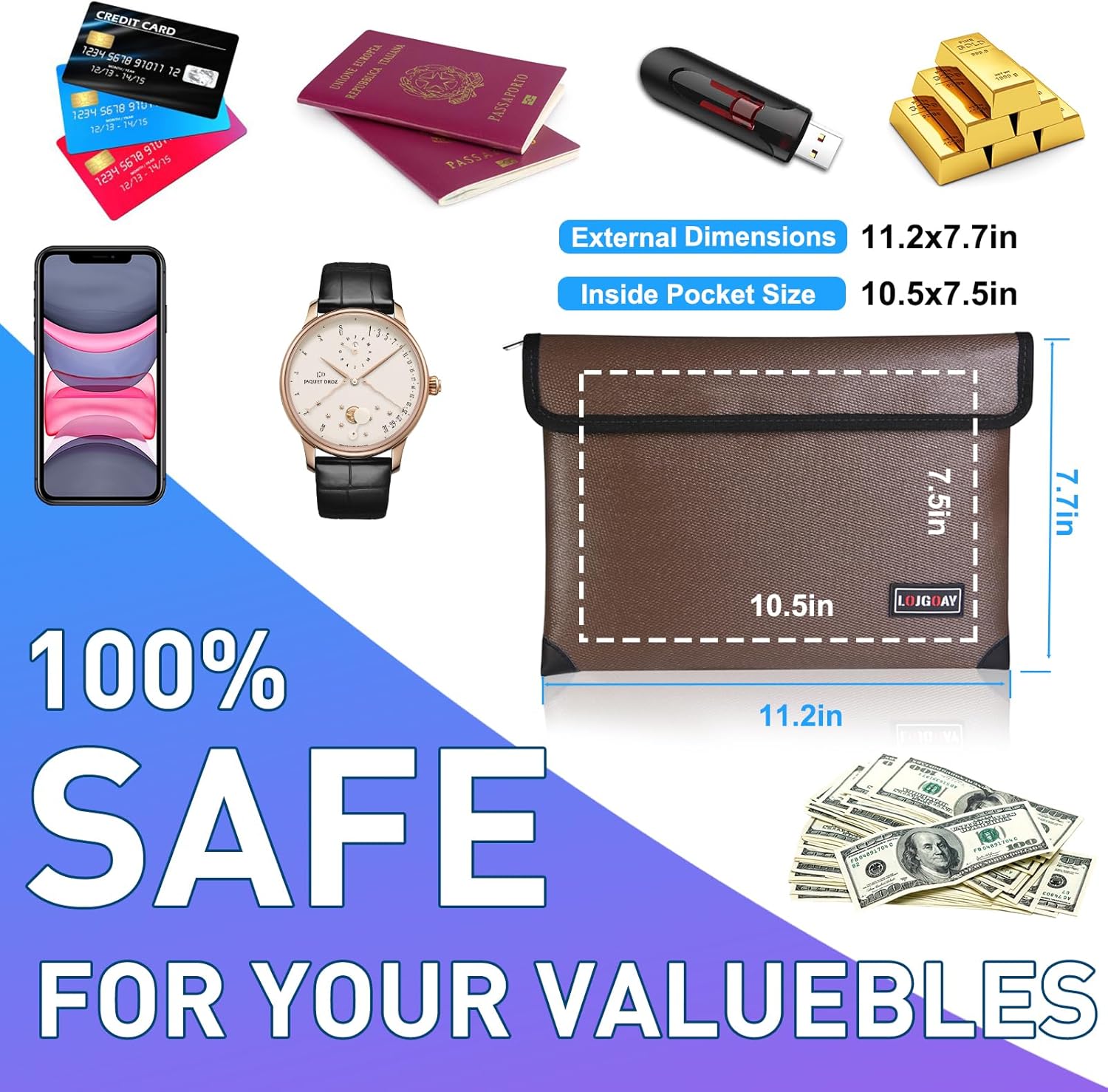 - 🔥TOP FIREPROOF DESIGN: Recommended by professional firefighters and tested in the most demanding environments,Our fireproof document bags mainly adopt a 8-layer function material structure of fire protection and heat insulated. The fireproof money bag for cash is sewn with flame-retardant thread and fireproof hemming, to prevent fire from damaging the fireproof bag from the edge, closure by flap, so that its zipper completely prevent fire,which make the fire safe bag 360° fire resistant