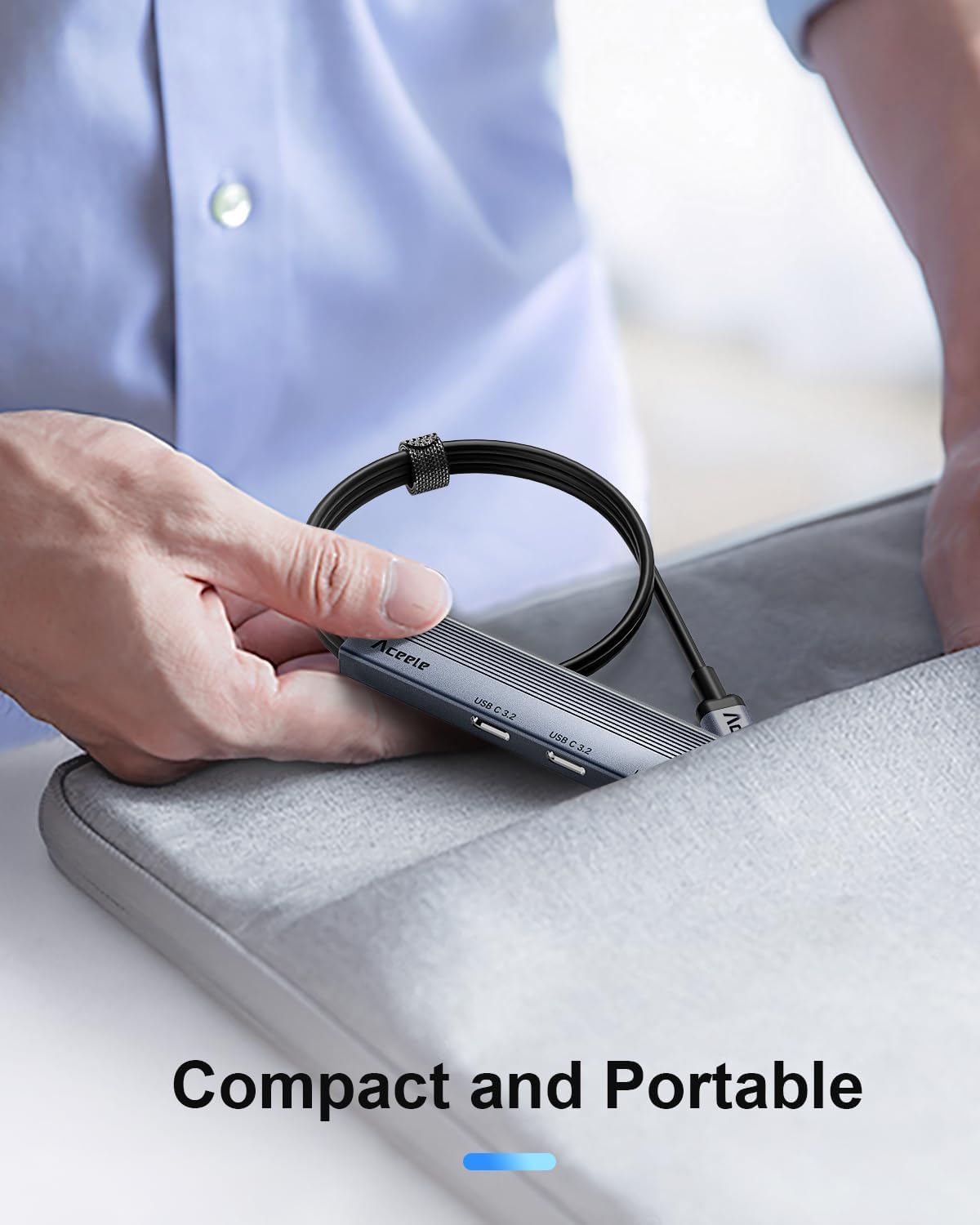 Aceele 10Gbps USB C Hub with 4 USB 3.2 Ports (2 USB A & 2 USB C), USB 3.2 Gen 2 3.3ft USB Cable Extender Hub with Type-C Power Port,Compatible for MacBook Pro 2021, iPad Pro 2021 and Other PC
