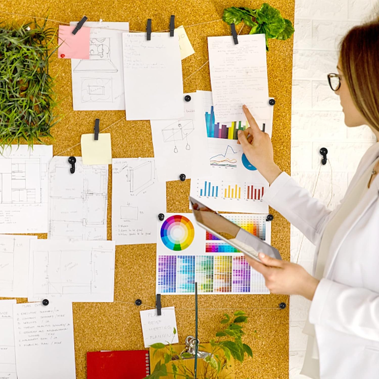 - 【Easy to Use】Our black push pins can easily nail it to the board or take it off without hurting your hands and without leaving obvious holes in the surface. Our push pins clips can hold the paper together well, and the push pin hooks can also easily hang 20lb products, easy to use.