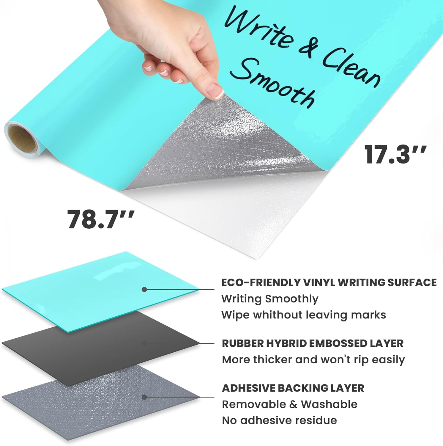T&W SAME FILM White Board Dry Erase-Colorful Whiteboard Wall Sticker Roll 17.3''X78.7''-Self Adhesive Dry Erase Paper for Desk/Glass/Fridge/Office/Door/Classroom/Kids/Adults-3 Markers-Blue