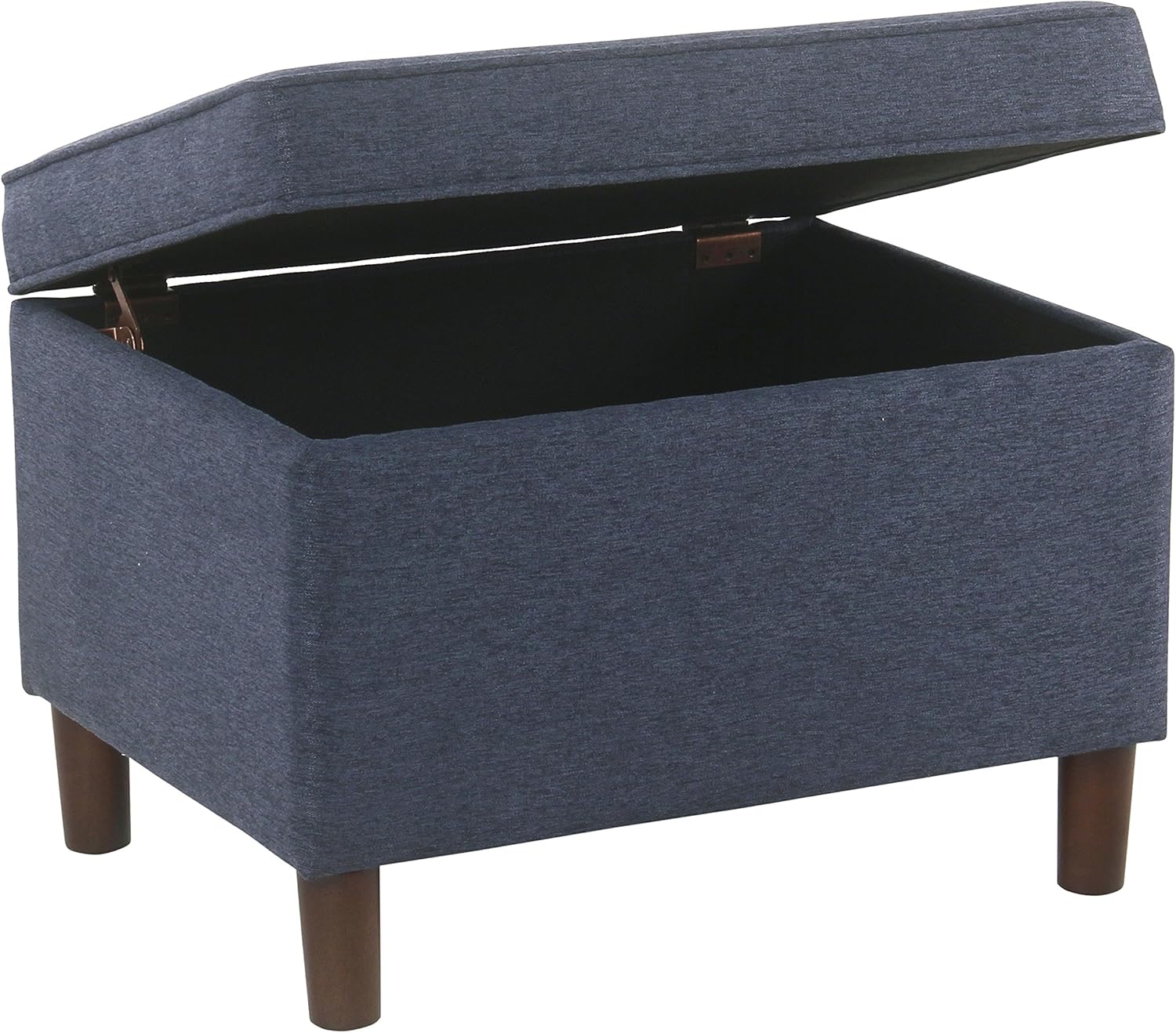 - STORAGE OTTOMAN: Our Accent Piece Fabric Ottoman features a hinged lid and with its versatility can be used as a Foot Stool Ottoman or Vanity Seat | Perfectly completed with tapered wood legs in a striking dark walnut finish along with stitching details for added interest
