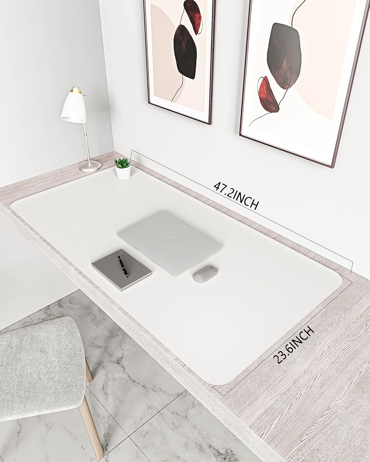 YSAGi Non-Slip Leather Desk Pad XL Size, Waterproof Laptop Computer Desk Keyboard Mat, Table Protector Blotter Mat, Large Mouse Pad for Office/Work/Home/Decor(White, 47.2" x 23.6")-No Band