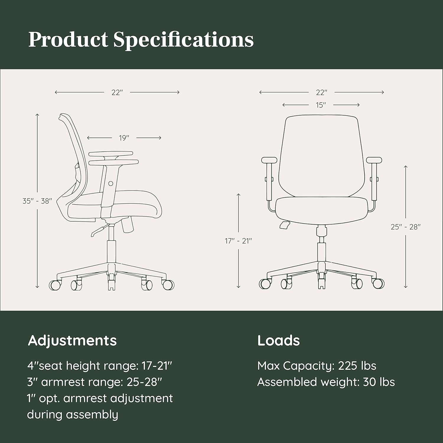 - SIMPLE ERGONOMICS: Our Daily Chair features light lumbar support designed to promote upright posture, making it perfect for individuals between the height 5'0" - 5'11". Say hello to comfortable productivity with this affordable office desk chair.
