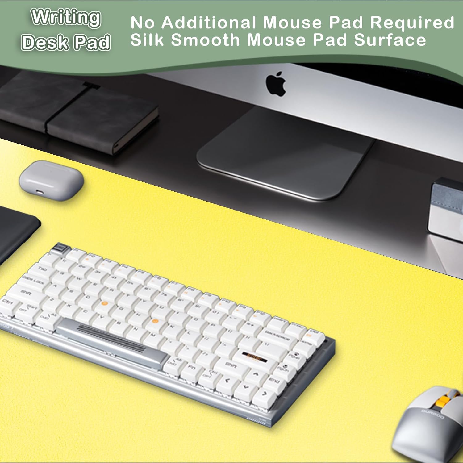 - 【Non-Slip Design】The non-slip backing leather adds stability during everyday use.It can firmly grips the desktop,keeps the pad from sliding. The desk pad can be used as study writing pad keyboard pad or computer table protector, friendly for student daily using,comfortable resting surface for your wrists while typing and using the mouse.
