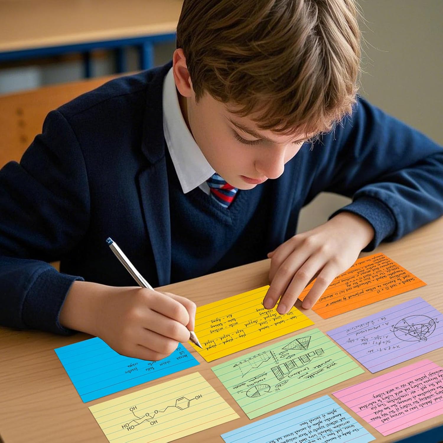 - Color Classification: Featuring 8 vibrant colors, these ruled index cards help you organize different subjects or topics (e.g., Red for Math, Blue for Science, Green for History). The color-coding system makes studying more structured and efficient, keeping your notes neat and organized