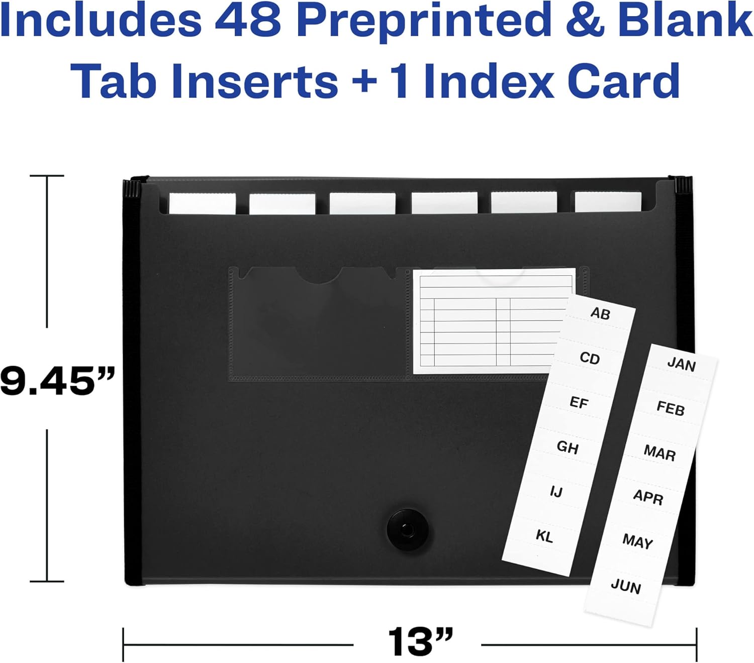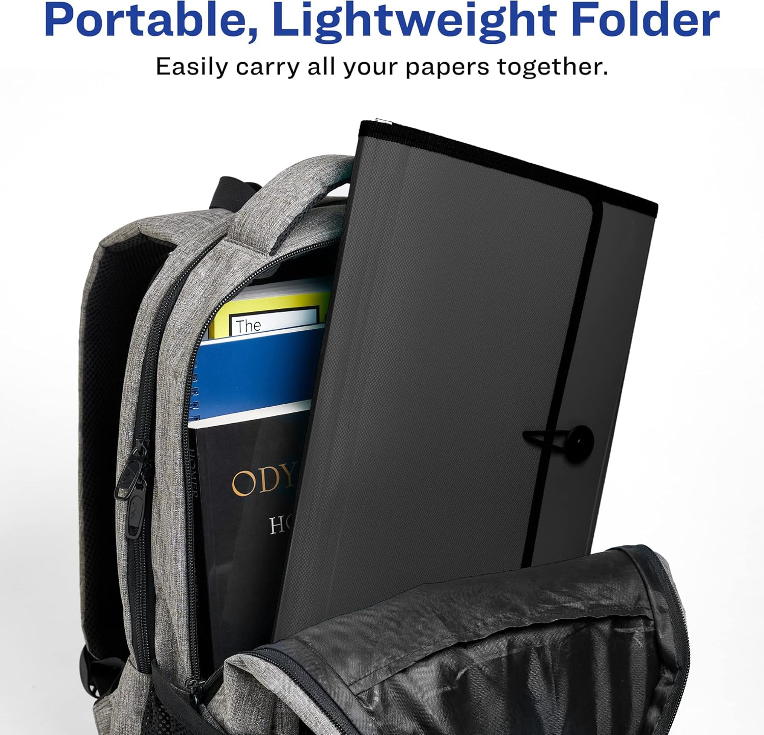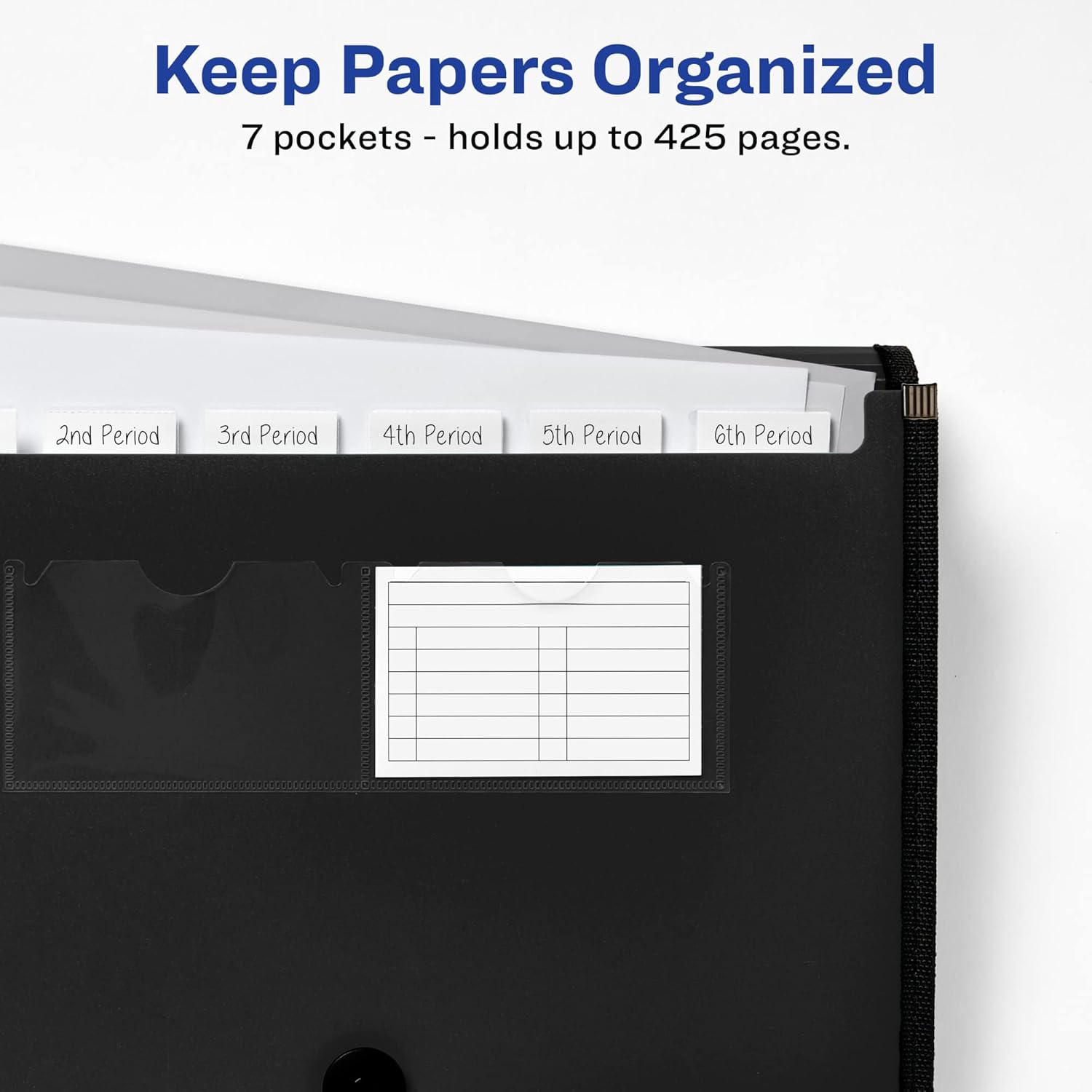 Avery Expanding File Folder Organizer, 7-Pocket Accordion File Organizer, Black, Holds 425 Letter/A4-Size Sheets (73550)