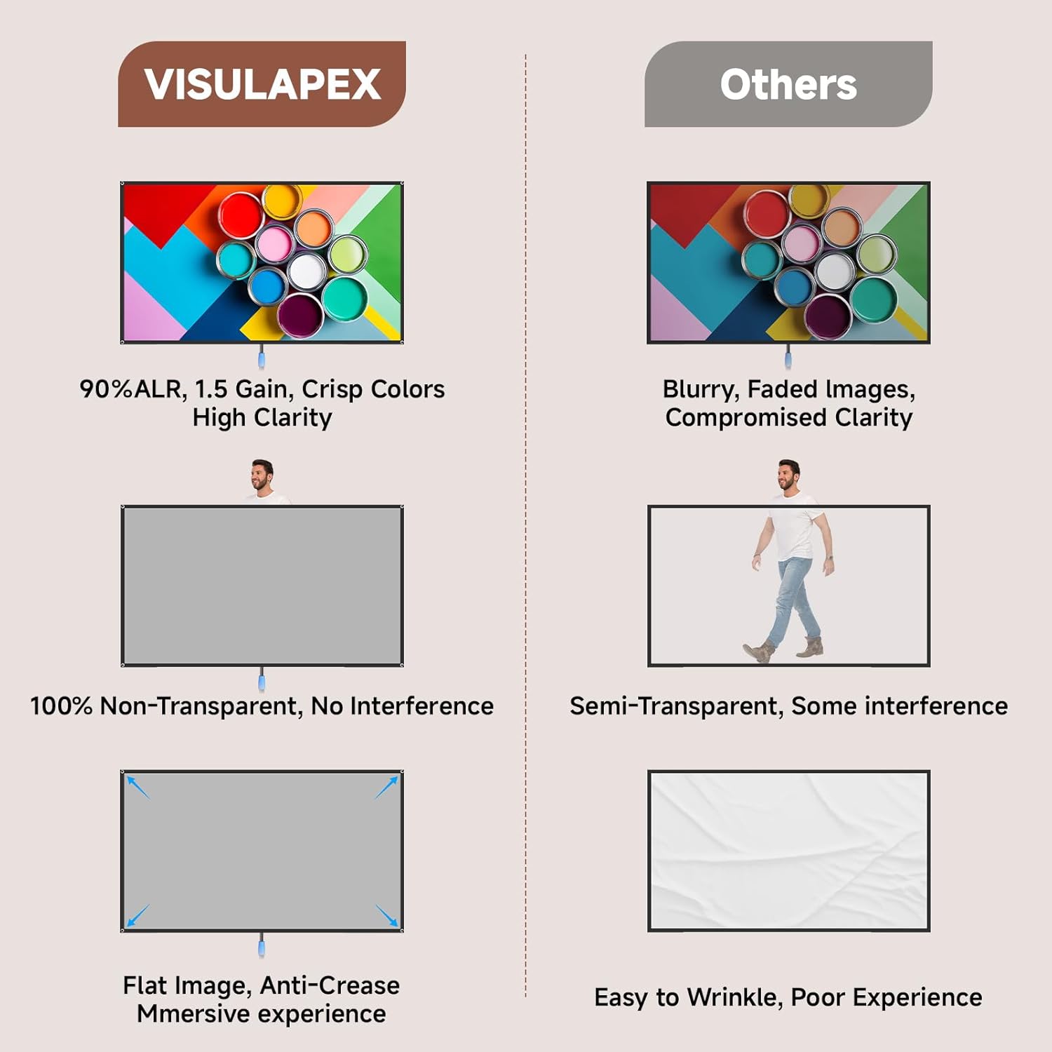 - OUTDOOR PROJECTOR SCREEN: Easy to carry, durable, no curling at the edges, easy to clean and carry, it is both an excellent outdoor projector screen and an excellent projector screen indoor.