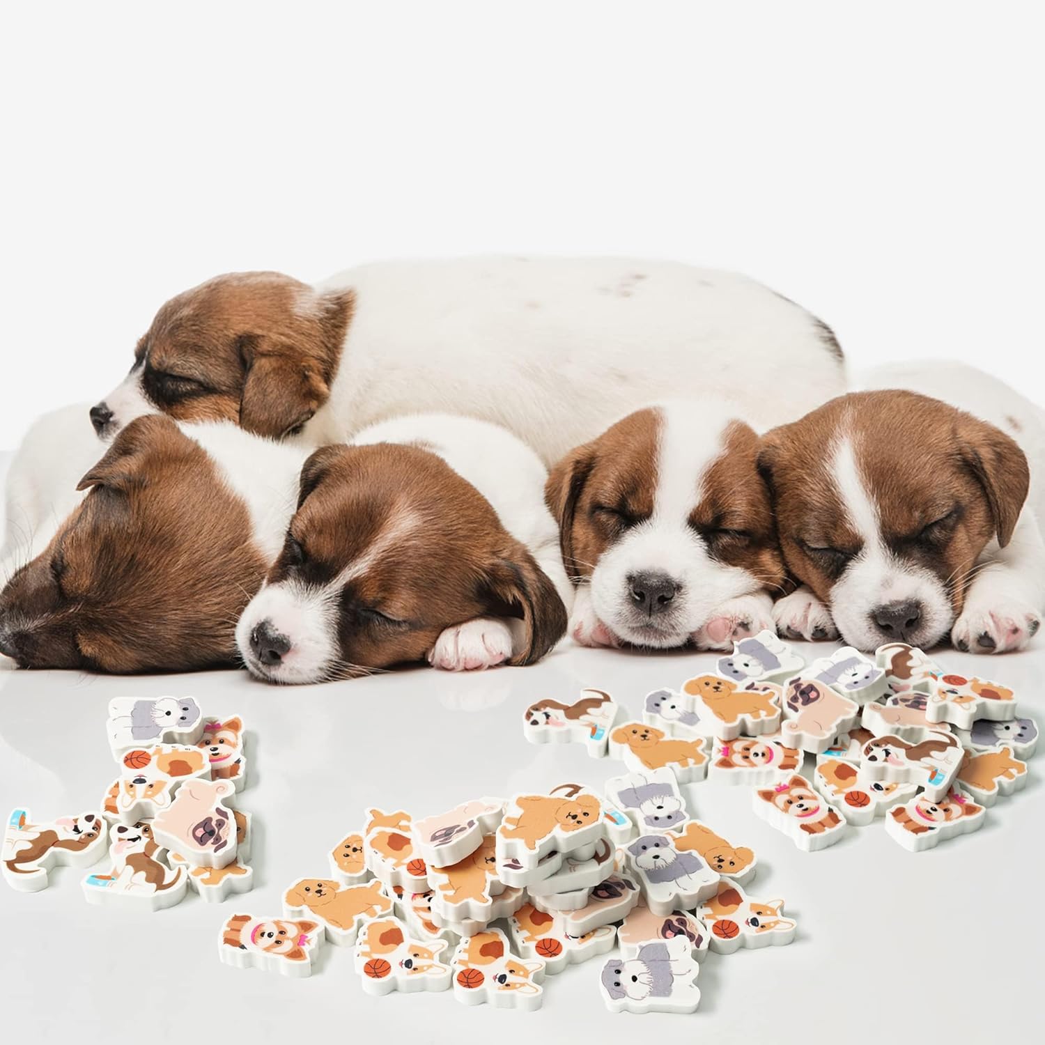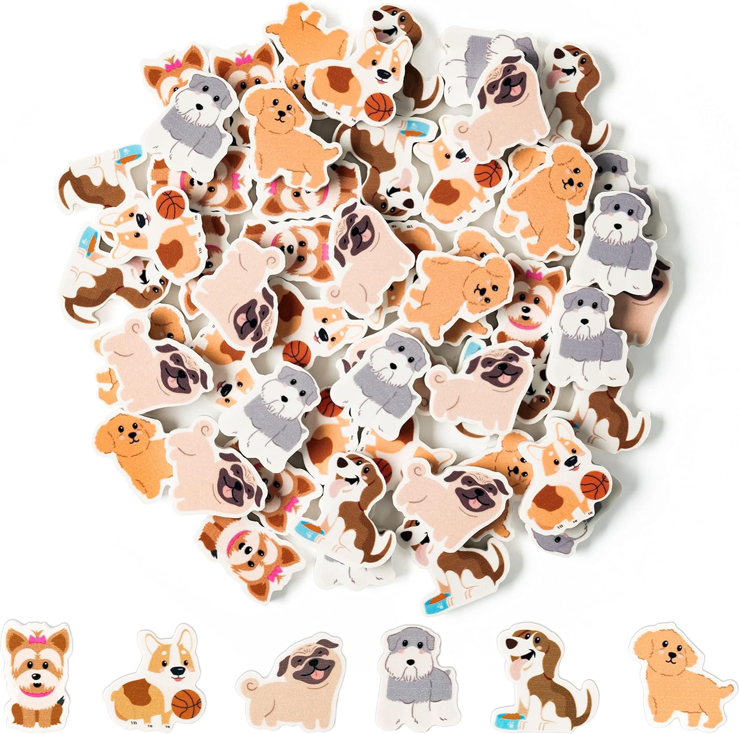 - Double-Sided Printing: The small dog erasers feature double-sided printing, which means that each eraser has a cute dog design on both sides. This adds a fun and playful touch to the product, making it more visually appealing.