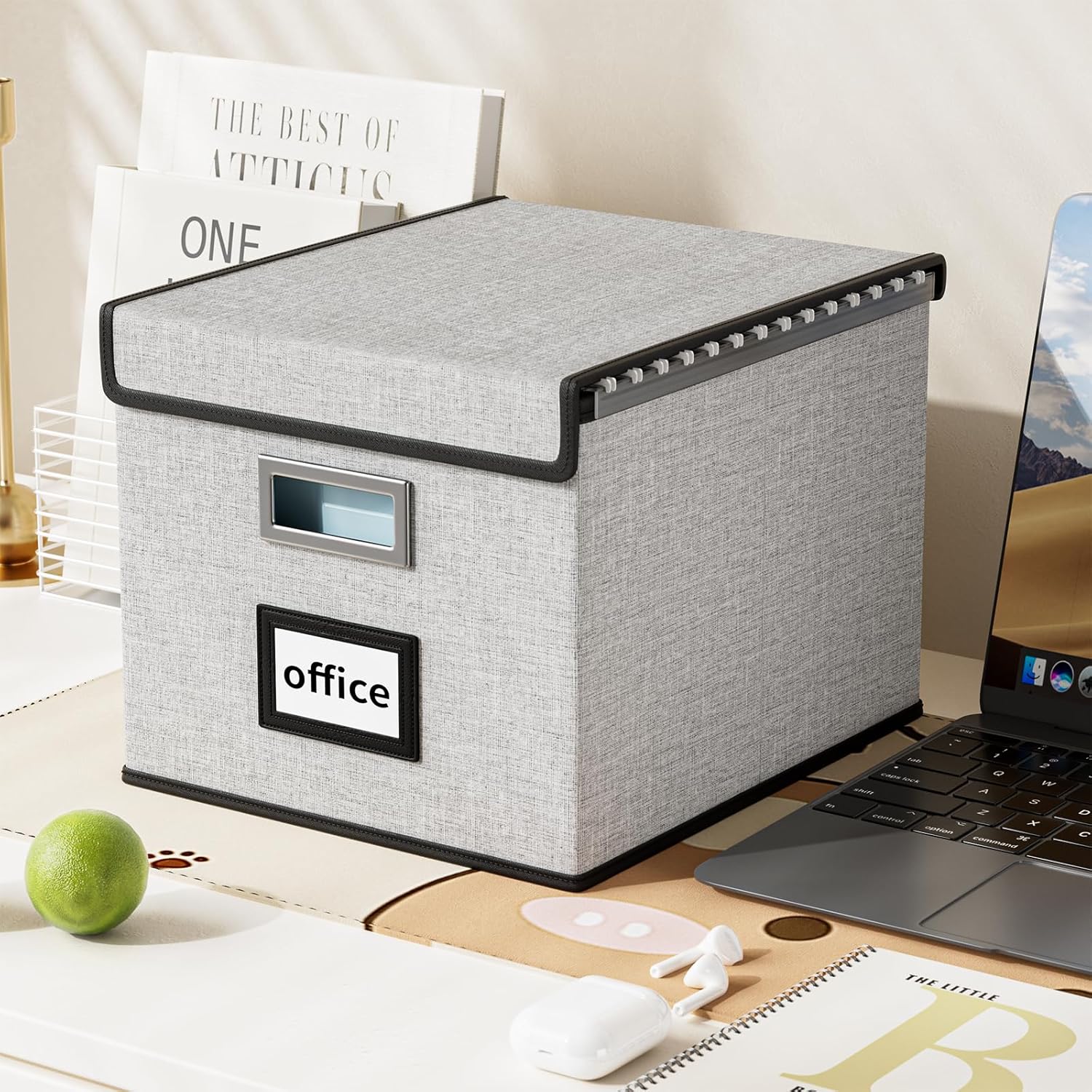 - Collapsible Multifunctional Filing Storage Organizer - The outer box with linen fabric can be dustproof, inside and the bottom support is made of thickened cardboard, which is environmentally friendly and not easily deformed. The cover with Velcro not only allows us to cover the file box easily, but provides more storage space for the file. It also acts as a small filing cabinet for tax documents, legal files and other documents storage. When we are not using it, we can fold it up to save space.