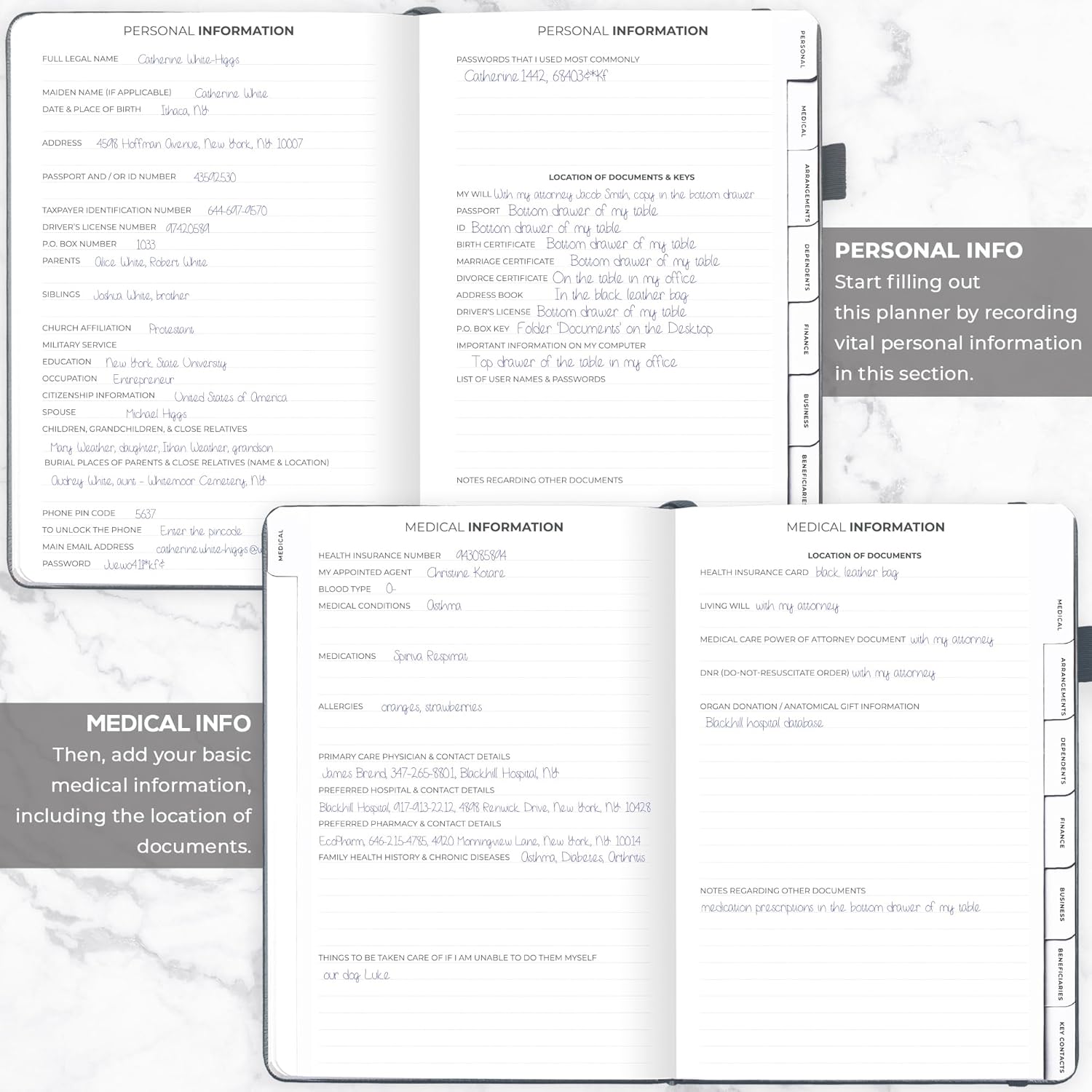 - PREPARE DETAILED INSTRUCTIONS TO GUIDE YOUR LOVED ONES: This guided final arrangements planner is an easy-to-use tool for organizing all essential personal information, from medical data to passwords and financial records.