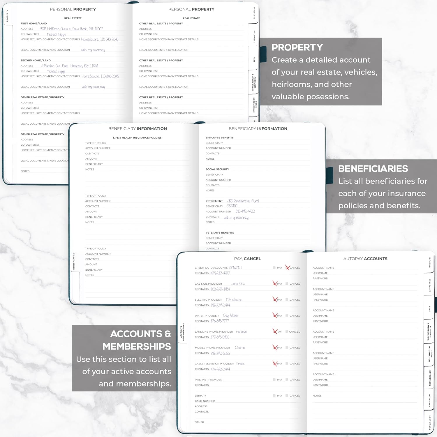 - PREPARE DETAILED INSTRUCTIONS TO GUIDE YOUR LOVED ONES: This guided final arrangements planner is an easy-to-use tool for organizing all essential personal information, from medical data to passwords and financial records.