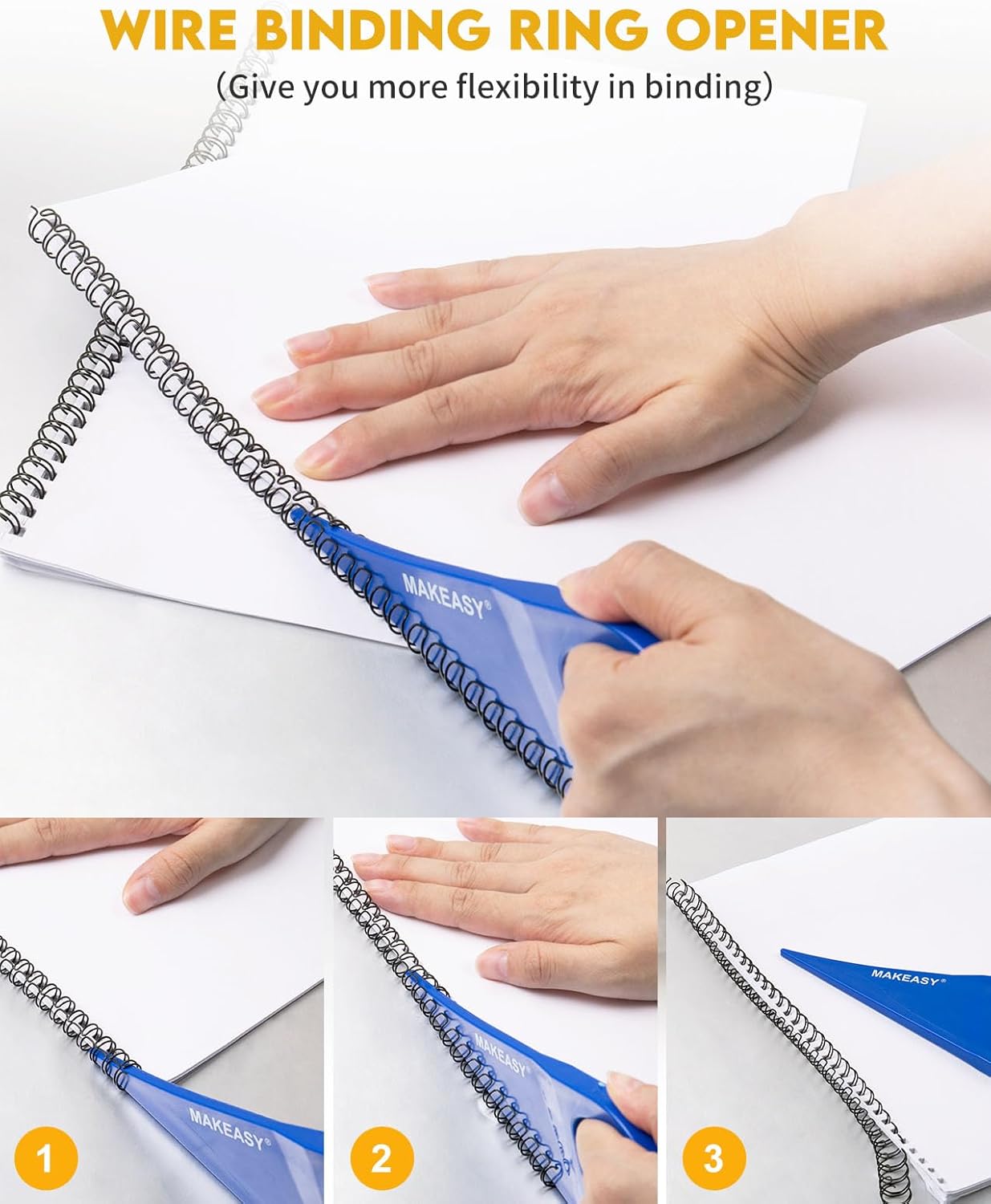 MAKEASY Binding Machine - Wire Binding Machine, 34 Hole, 15 Sheets Punch Capacity, Metal Book Maker Machine with 1 Box Wire Spines & Ring Opener