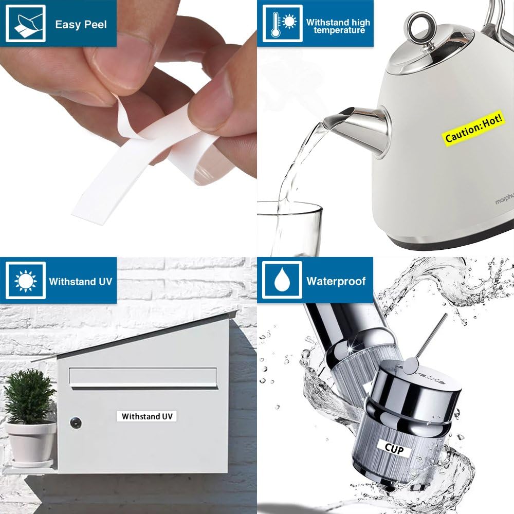 - FEATURES: Water resistant,temperature resistant,laminated,grease resistant, grime resistant and fade Resistant. These label tape can be used for industrial, home and businesses and can be used in microwaves, freezers, and dishwashers.