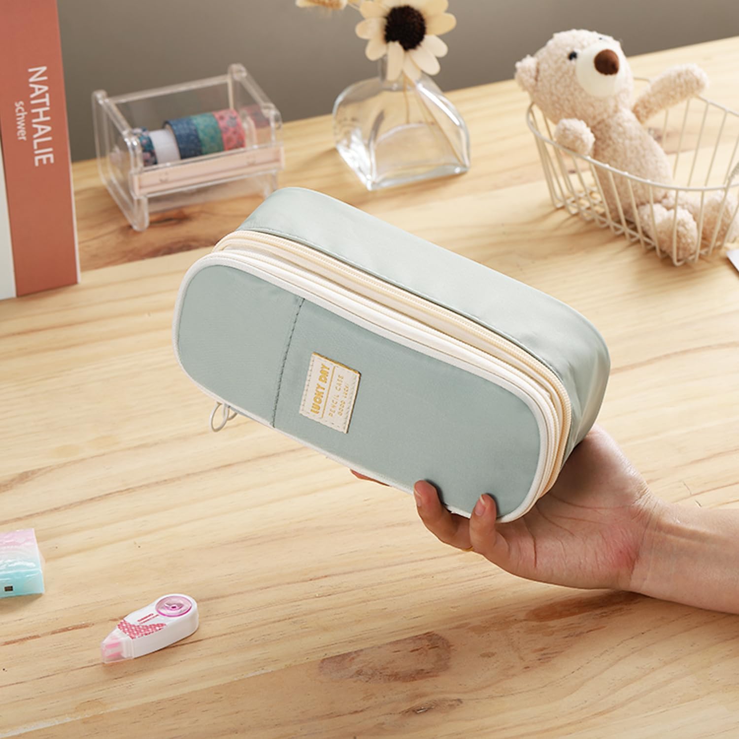 Big Pencil Case Large Capacity Pencil Bag with Zipper Pencil Pouch for Girls Boys Kids Adults Stationery Pencil Pen Case Organizer for School Office Green