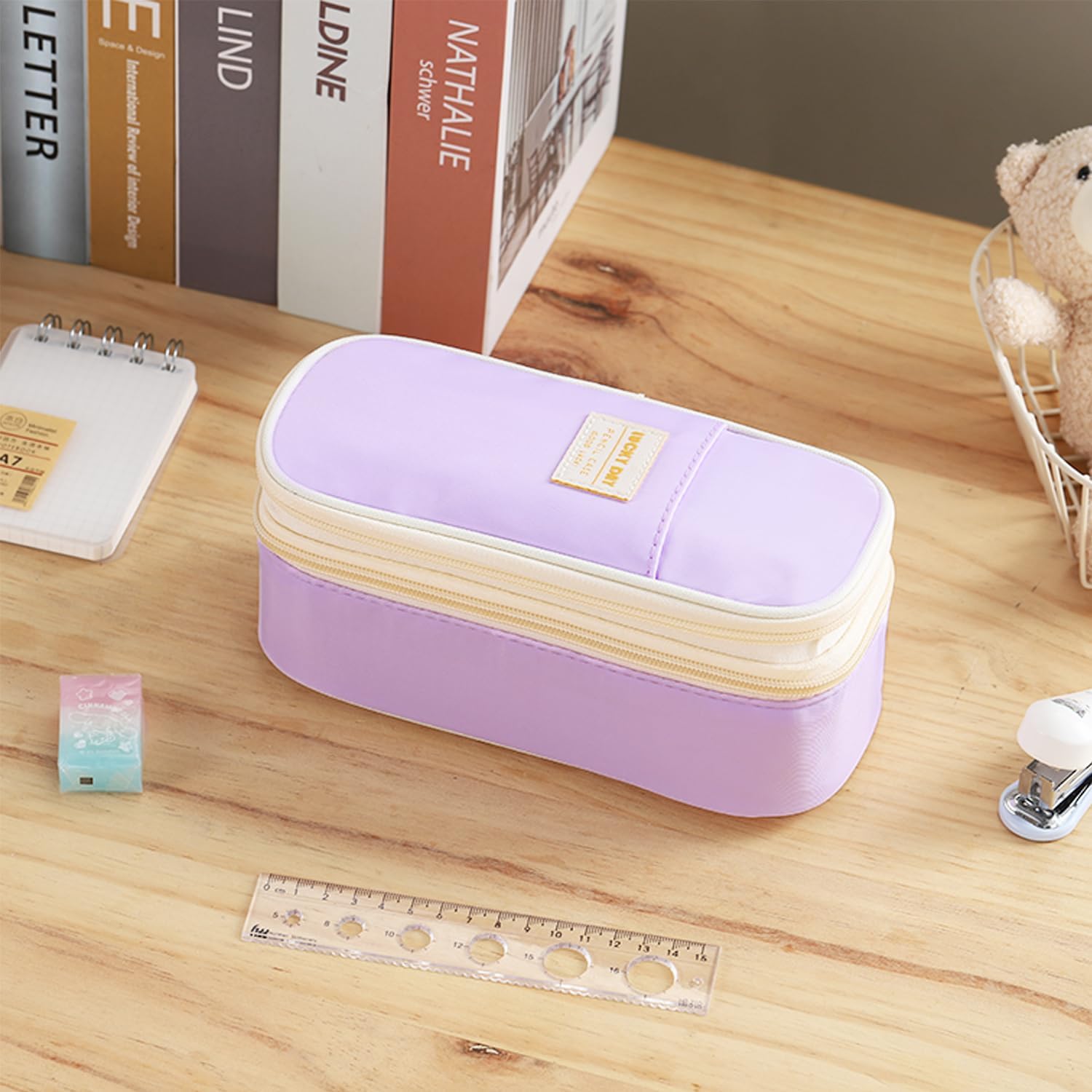 Big Pencil Case Large Capacity Pencil Bag with Zipper Pencil Pouch for Girls Boys Kids Adults Stationery Pencil Pen Case Organizer for School Office Purple