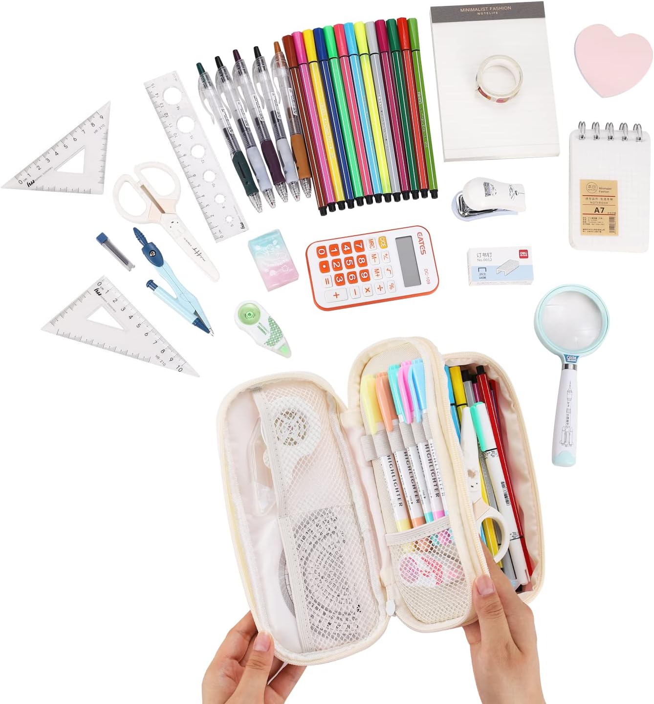 - Large Capacity: The Dimensions is 9.06'' x 4.33'' x 3.54'' This pencil case allows up to 80-100 pens/pencils, 20 cm ruler, pencil sharpener and other stationery gadgets.