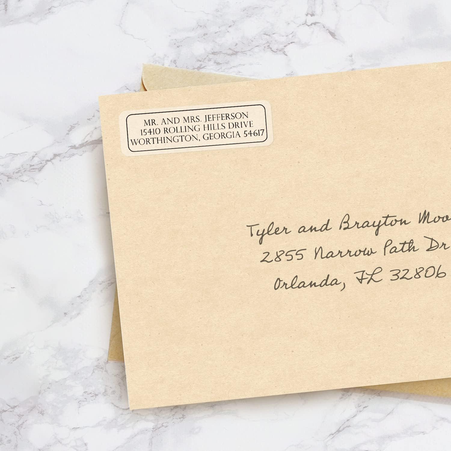 - Perfect Size: These classic address label designs measure approximately 2½" x ¾". Simple design for any wedding theme, trendy font choices brings charm to this timeless address label. Clean, legible address font surrounded by a simple black outline.