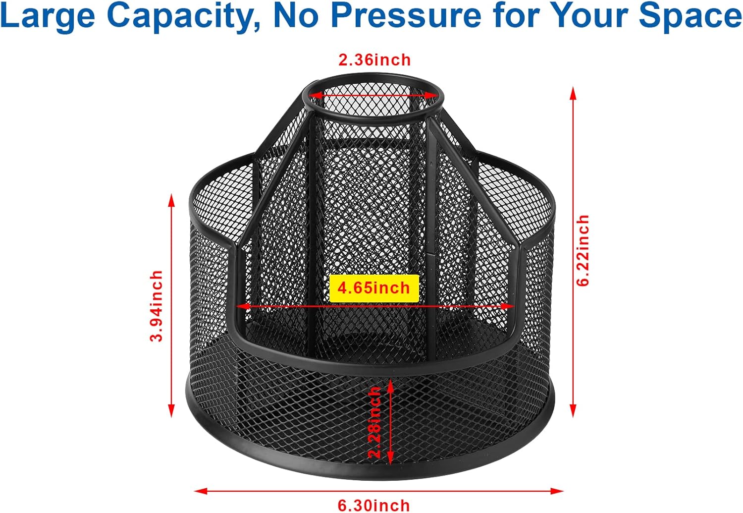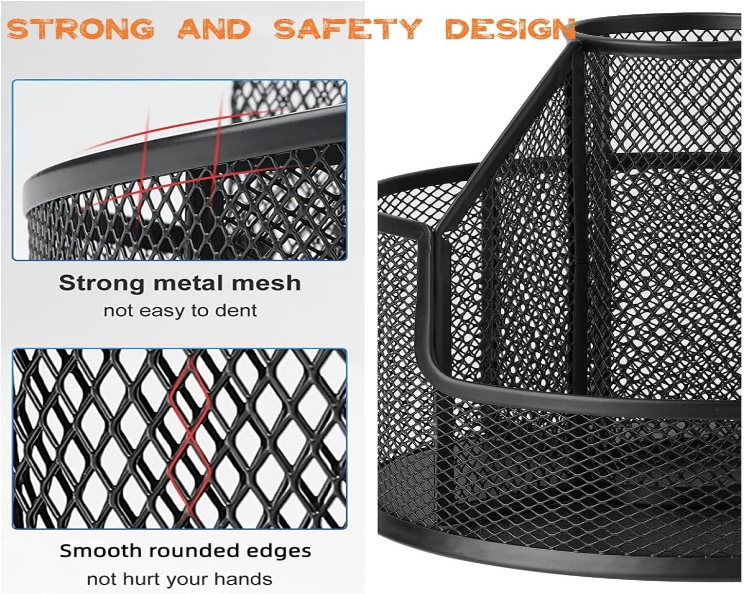 Pencil Holder, Rotating Desk Organizer, Metal Pen Organizer Mesh Pen Holder Office Desk Accessories Cute Office, School, Home,Art Suppliers (Black)