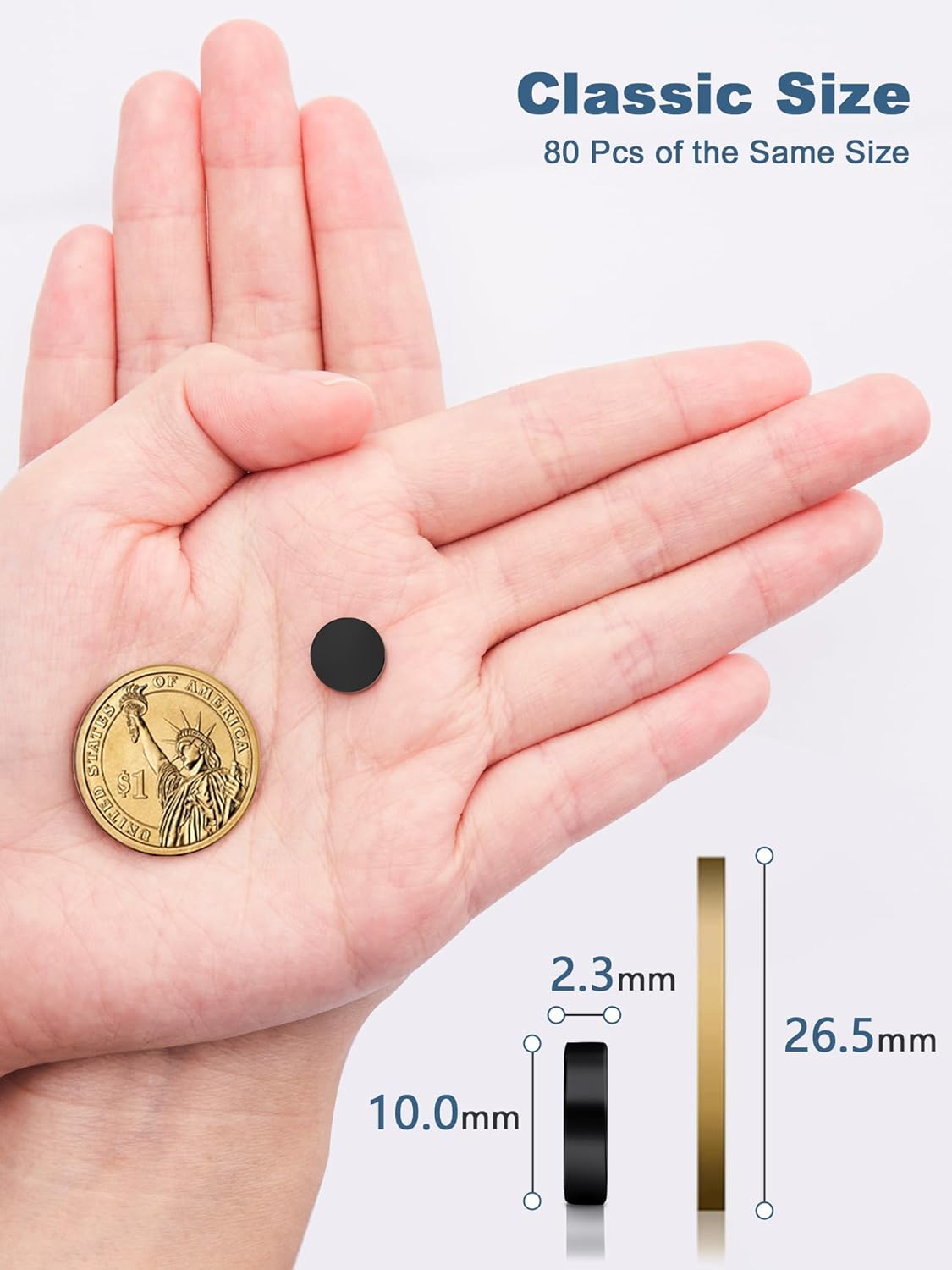 - Useful Design - Despite of its small size (Diameter: 10 mm, thickness: 2.3 mm), each magnet is able to hold at least 15pcs sticky notes. You don't have to worry it's not able to fixate the paper.