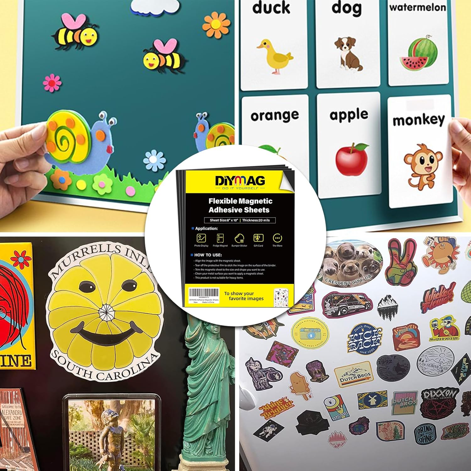 DIYMAG 16Pack Magnetic Adhesive Sheets, Magnetics Sheets with Adhesives Backing, 8x10 Inch Flexible Magnet for Crafts Photos and Die Storage Easy to Cut