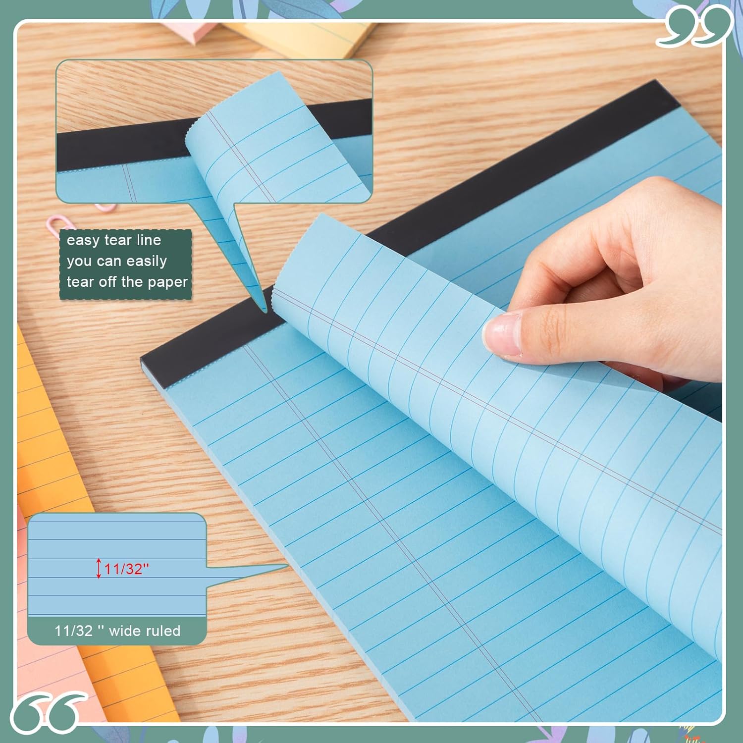 - Wide Ruled Design: these colored legal pads come with horizontal spacing of 11/32 inch, the classic wide ruled design can provide you with nice visual guidance when writing, ideal for homework or taking notes