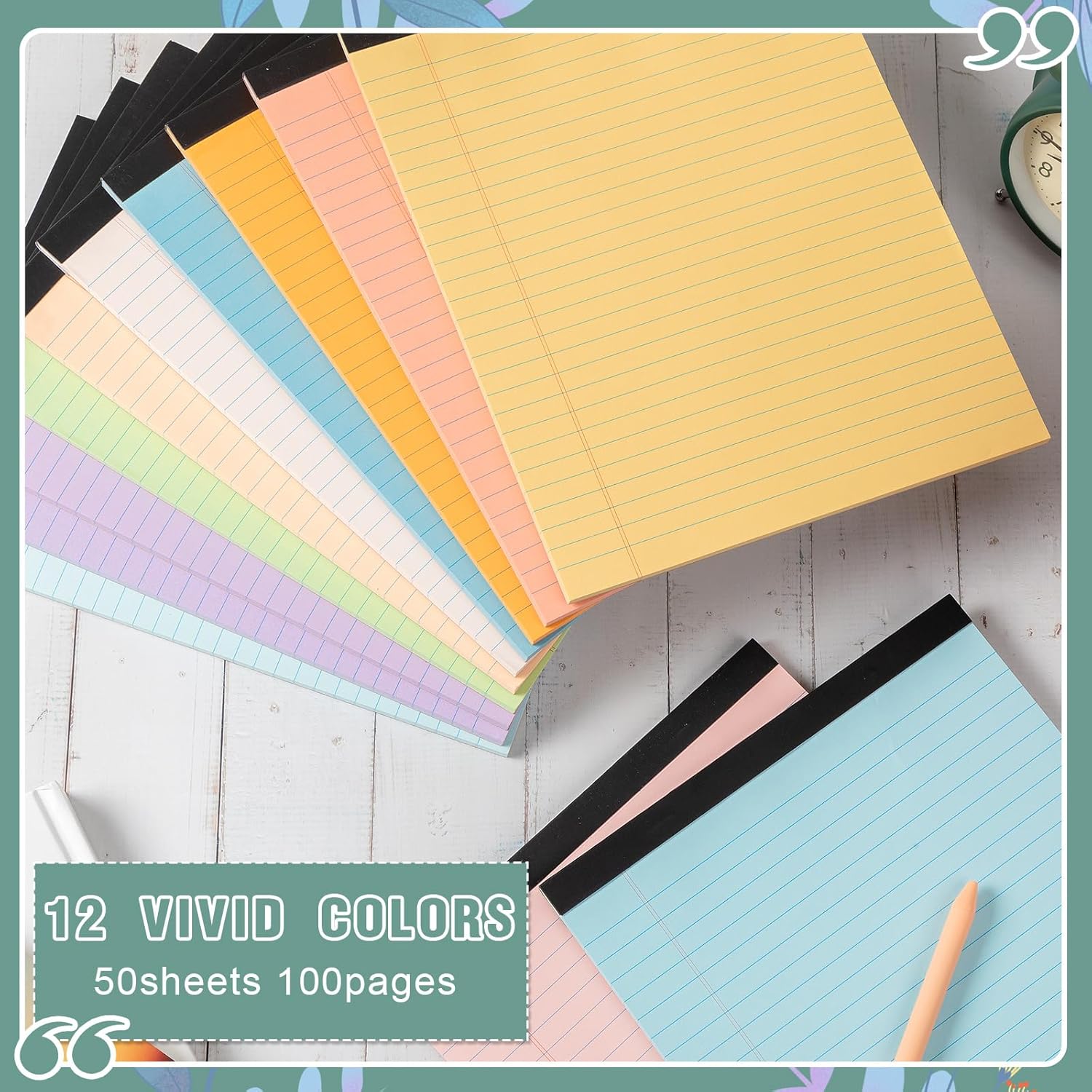 Lincia 12 Pcs Colored Legal Pad Writing Pads 8.5 x 11 Inch Wide Ruled 50 Sheets Per Notepad Micro Perforated Writing Notepad for School, College, Office, Business (Multicolor)