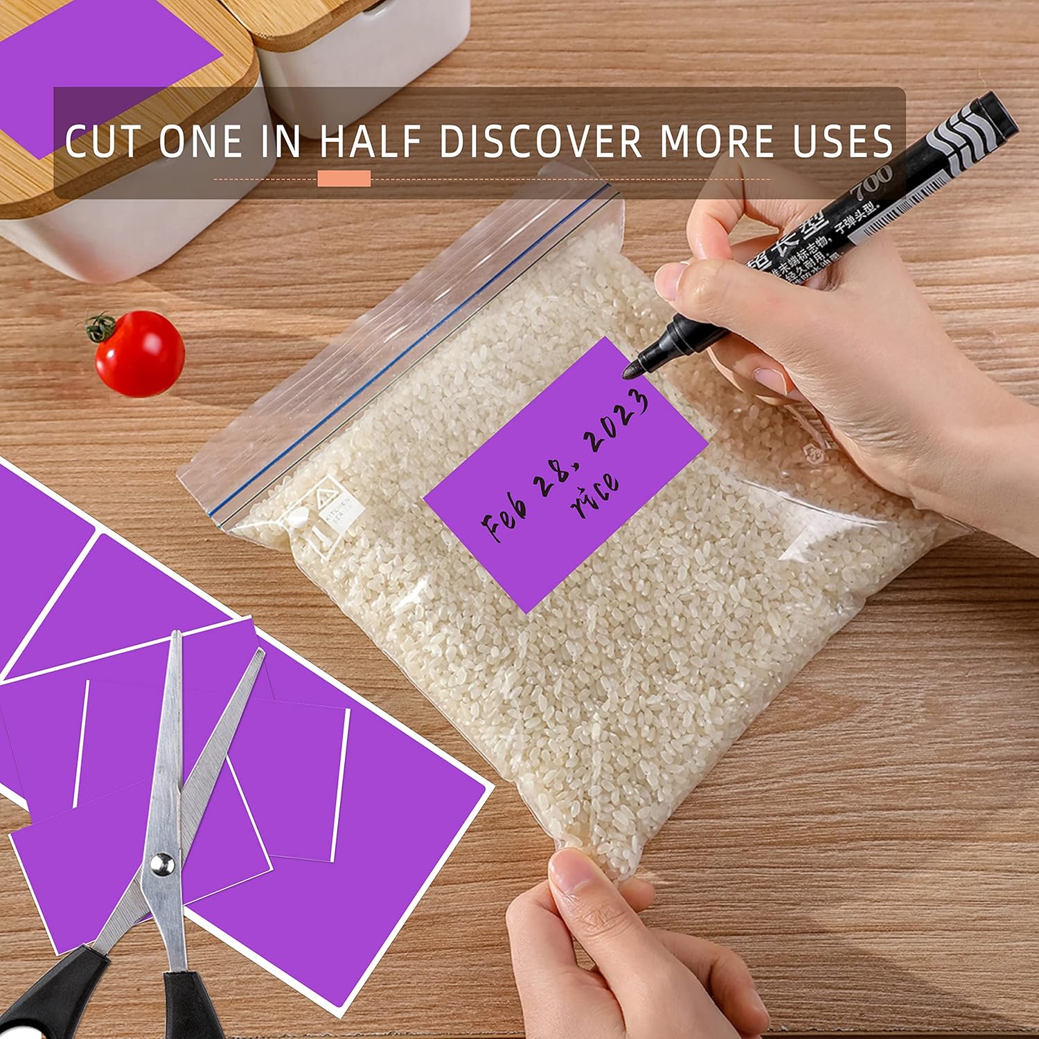 - These Rectangle label stickers adhesive label are easy to use,tear off the dotted line of the color box and pull the circle stickers from box, what you want is just write it with a felt tip marker, peel it and then stick it!