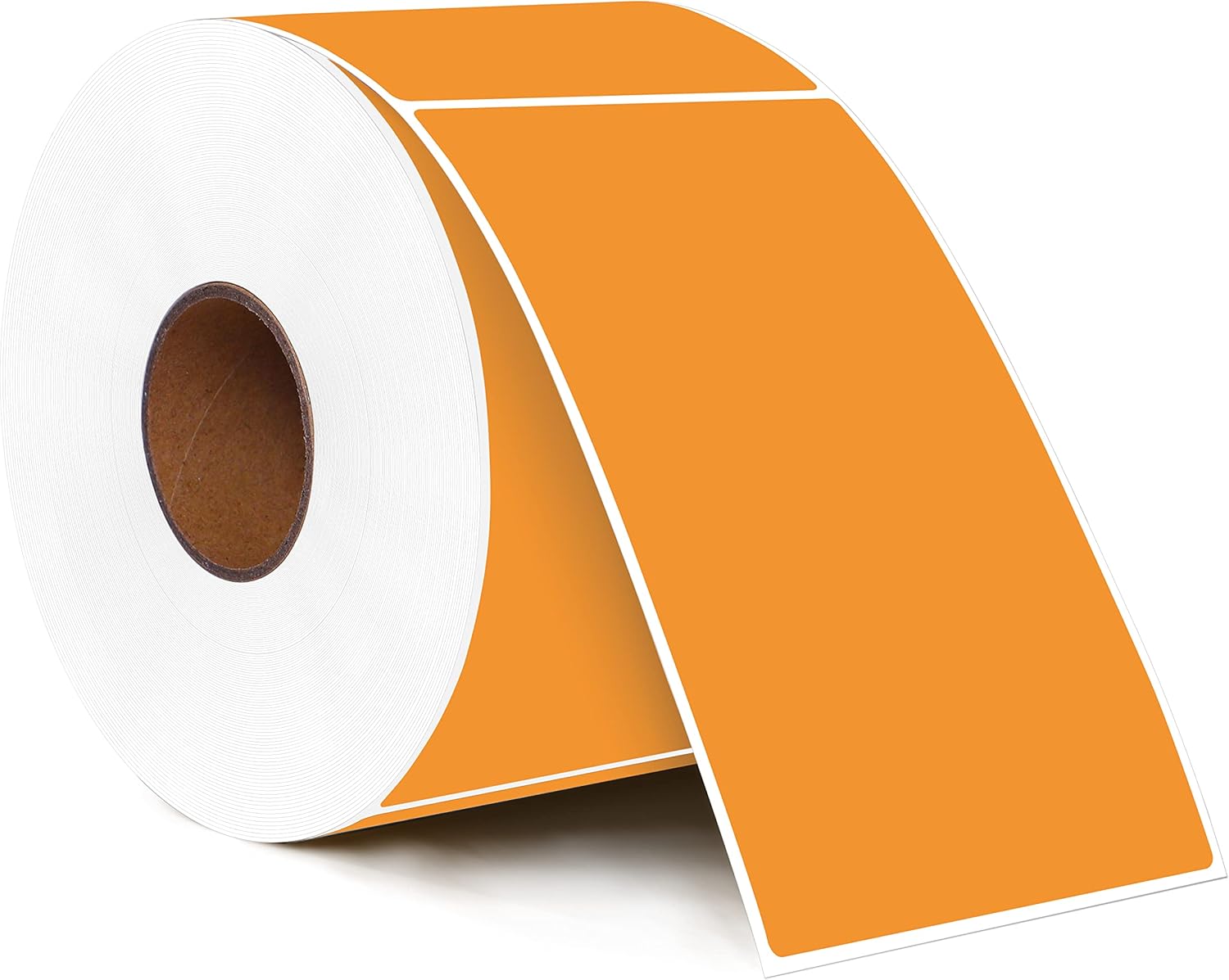 - 500pcs coding adhesive labels on a roll. 3”x 5" diameter, orange Color-Code Rectangle Stickers.