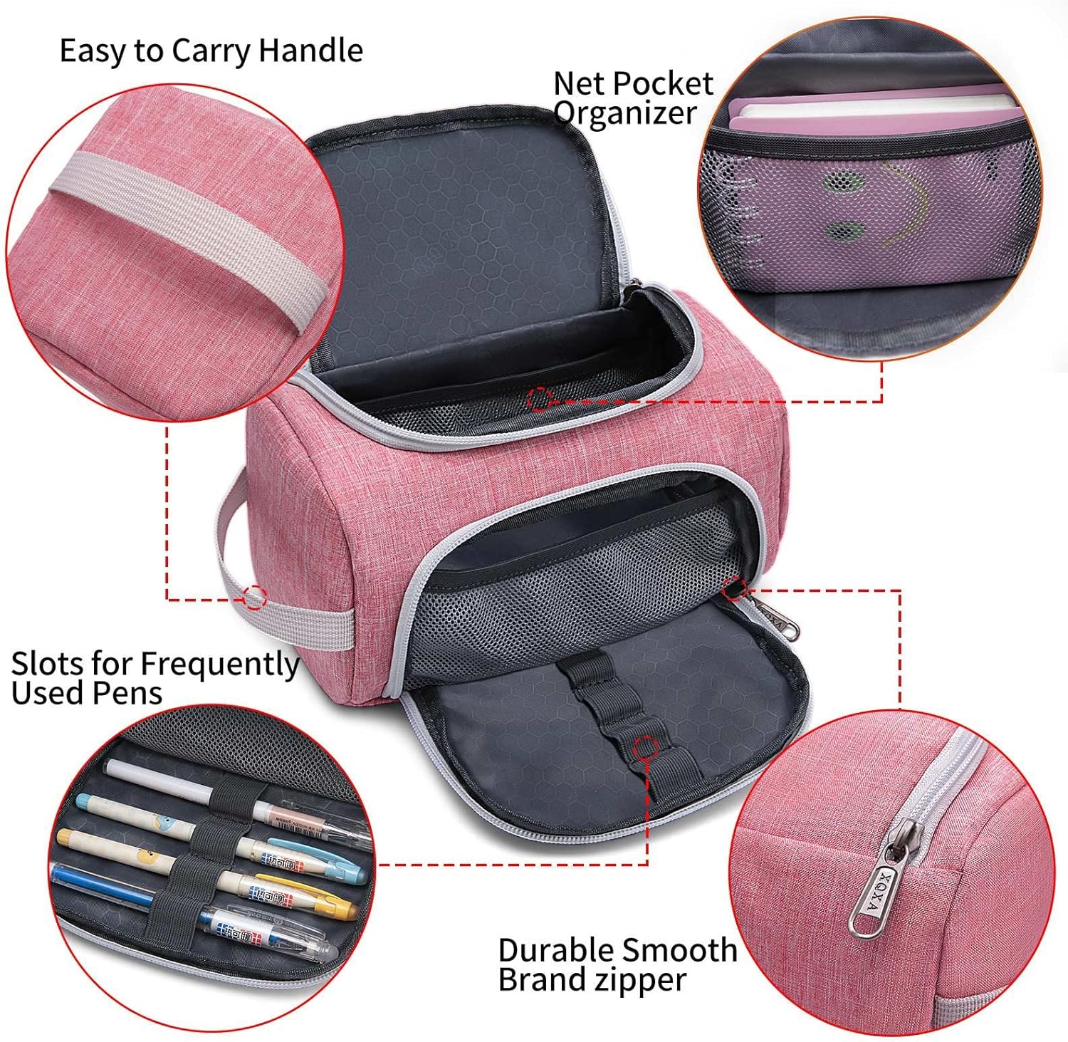 XQXA Extra Large Capacity Pencil Case Organizer, Multifunctional Pencil Pouch with Compartmens, Travel Simple Stationery Bag, Nylon Pencil Bag for Adults (Pink)