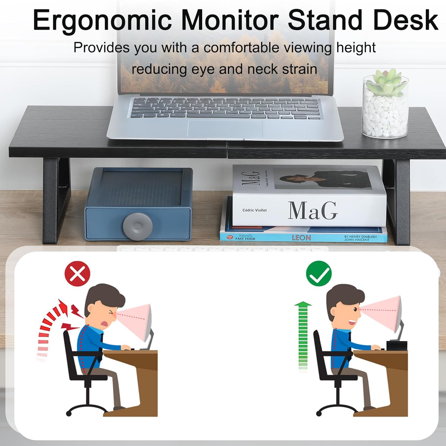 - 【Spacious Wood Surface】The MDF wood surface area is large and wide enough to hold your monitor/ laptop & docking station, it is smooth, comfortable, and trendy.