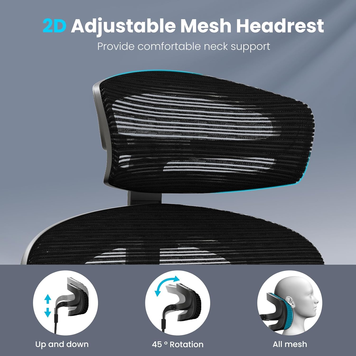 - Flexible Adjustments Functions: Our ergonomic office chair features a multi-stage height-adjustable headrest, lumbar support, and 3D armrests for a customized fit. The ergonomic office chair can be tilted from 90° to 120° to 135°,and the cushion can be adjusted back and forth.