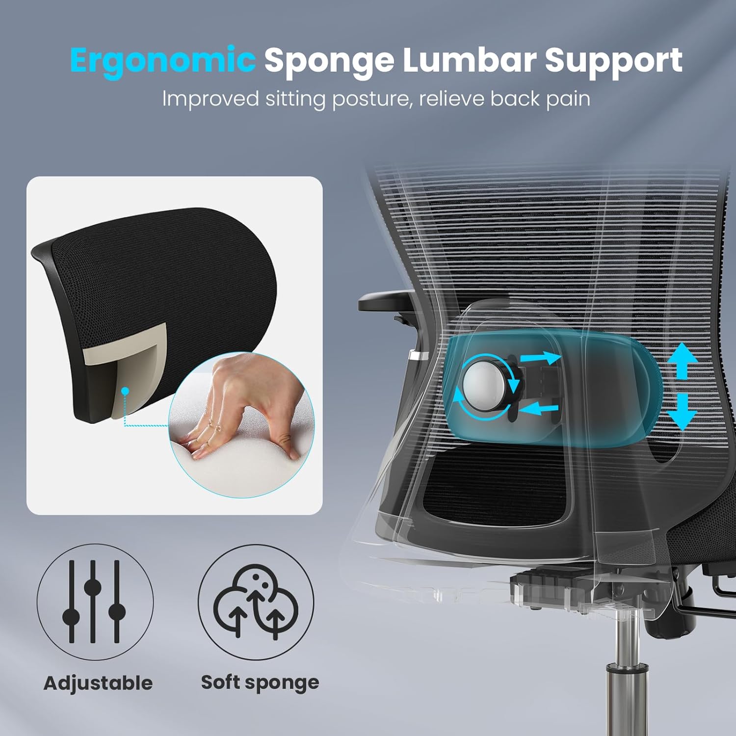 - Comfortable and Breathable: With high-quality reinforced mesh, our ergonomic office chair keeps your back cool and comfortable while keeping you focused and relaxed. It also has soft PU padded armrests and high-density sponge cushion for enhanced comfort.