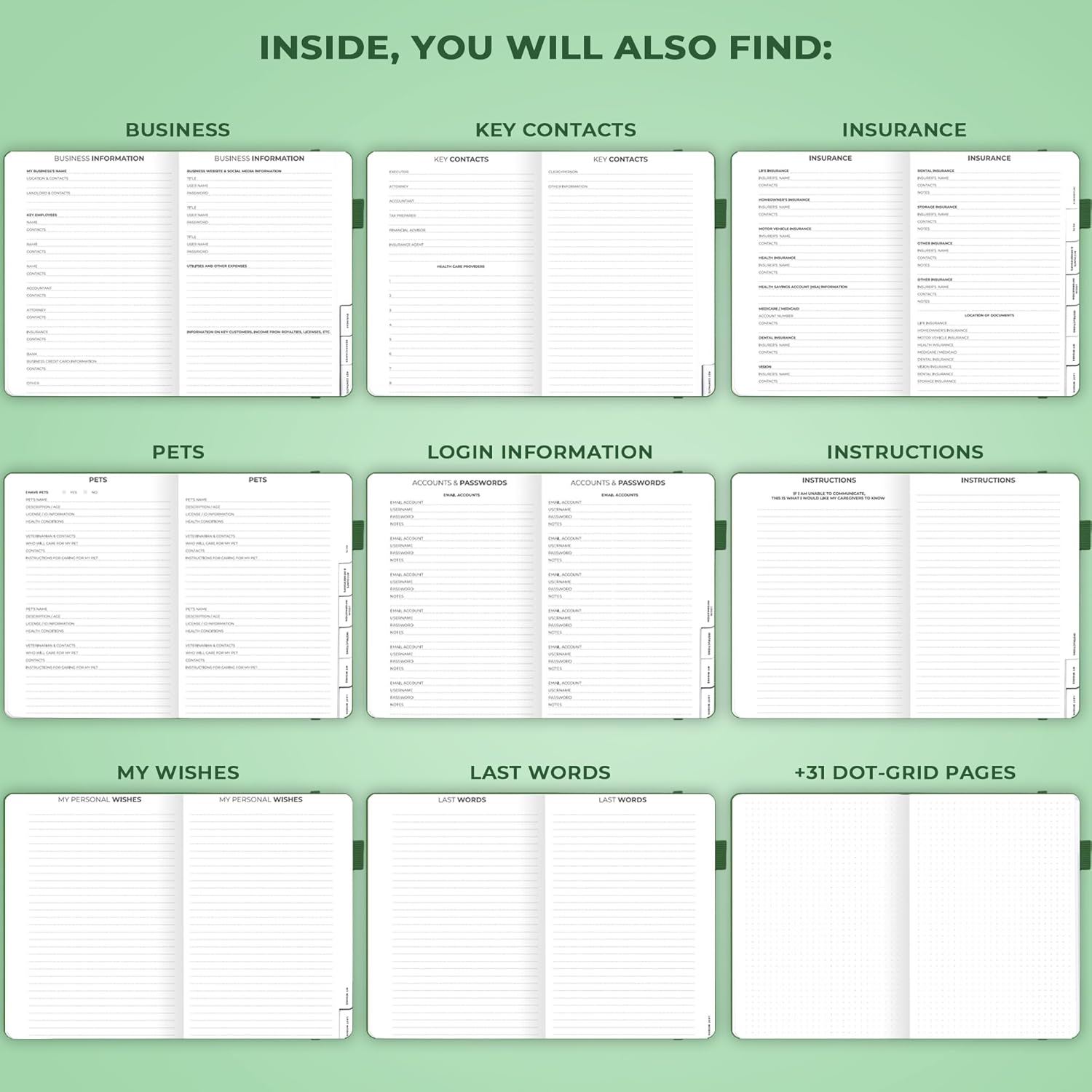 - PREPARE DETAILED INSTRUCTIONS TO GUIDE YOUR LOVED ONES: This guided final arrangements planner is an easy-to-use tool for organizing all essential personal information, from medical data to passwords and financial records.