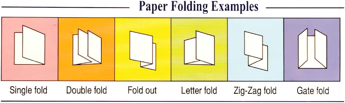 - Folding options: single fold, Double fold, fold out, letter fold, zig-zag fold, and gate fold