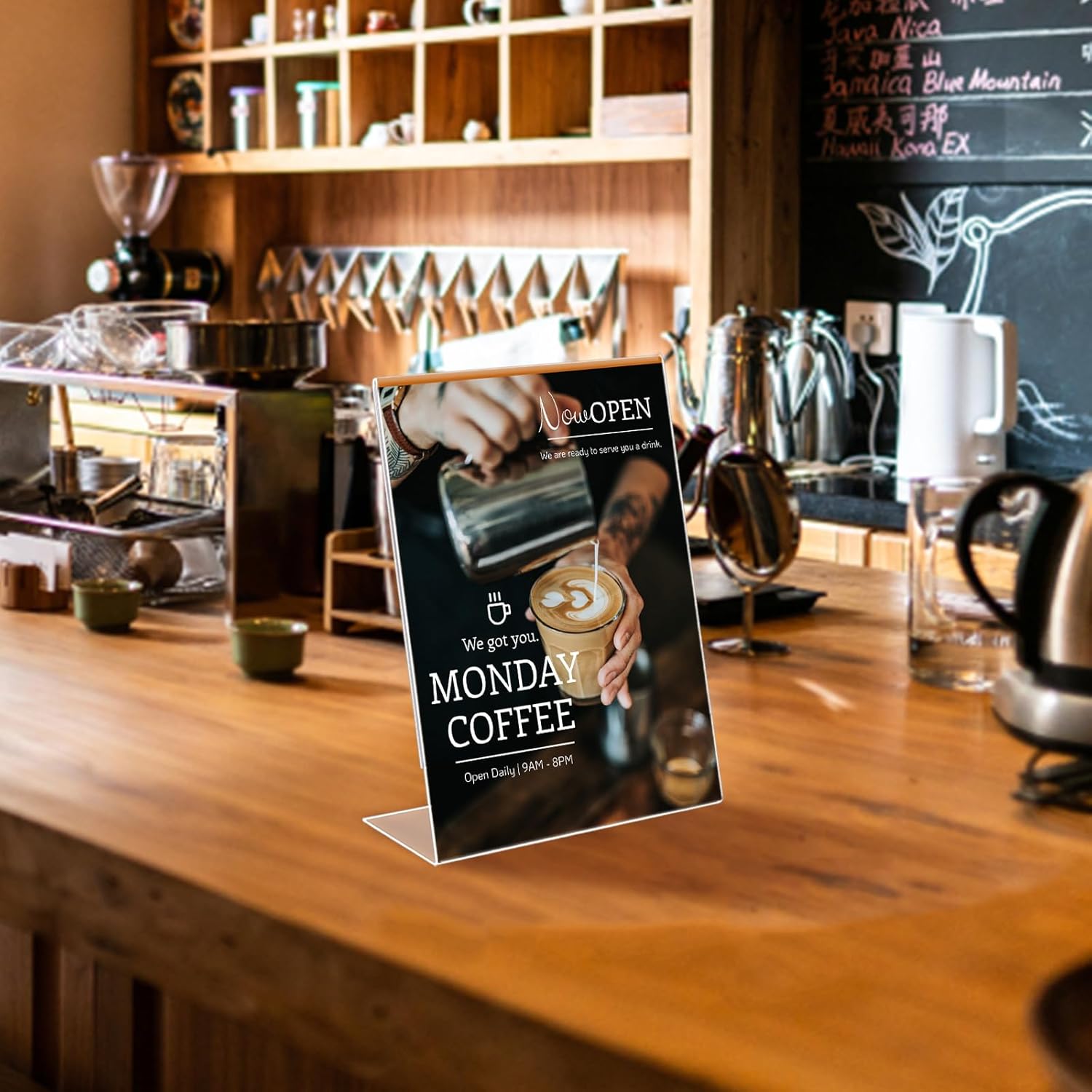 - 【Widely Usages】 Our acrylic sign holders are perfect for showing your latest promotion to customers and maximize the effect of your marketing material. And they are suitable for homes, offices, schools, restaurants, churches, hotels, exhibitions, reception areas, weddings etc.