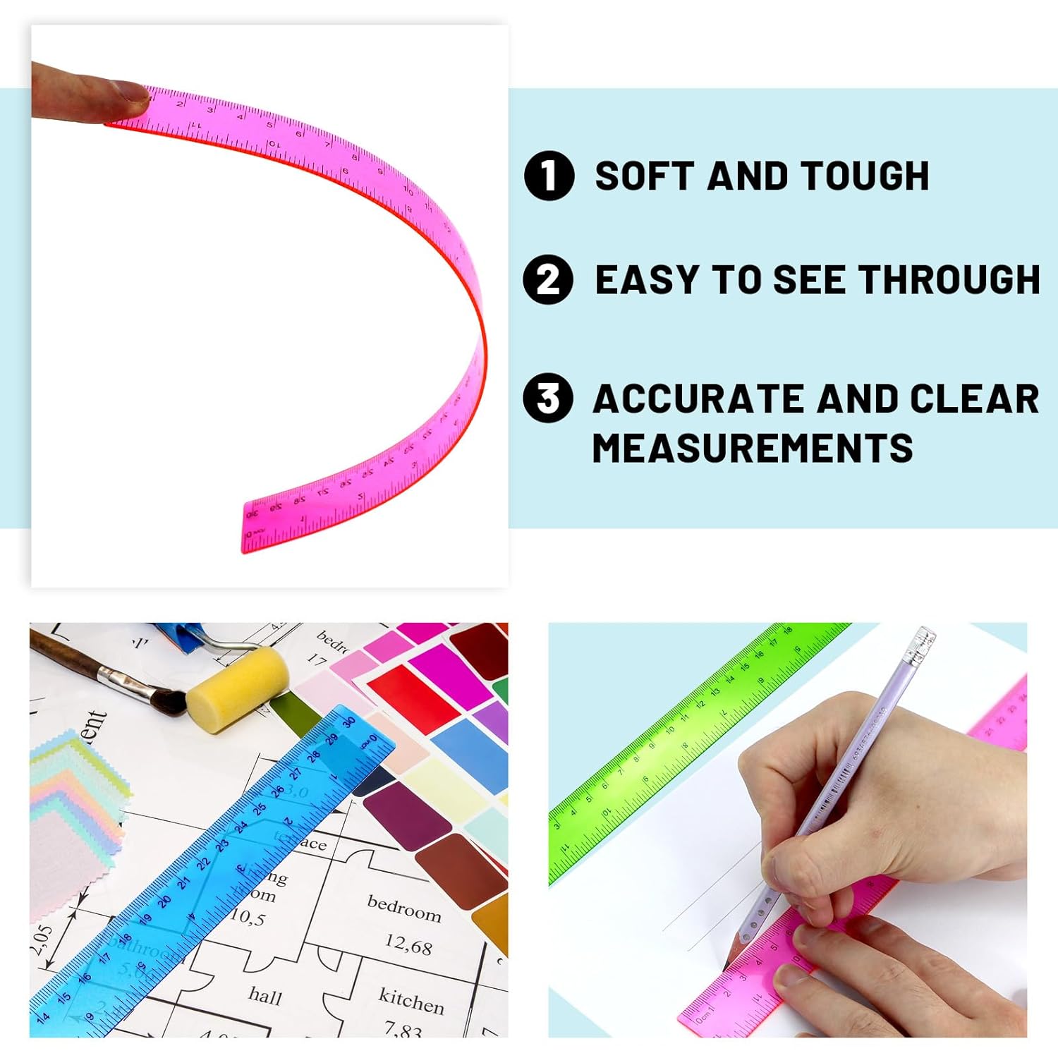 - 【Wide Application】Very suitable for children and students, these clear rulers are useful measuring tools for math education, classroom teaching, classes, schools, offices, homes, etc.