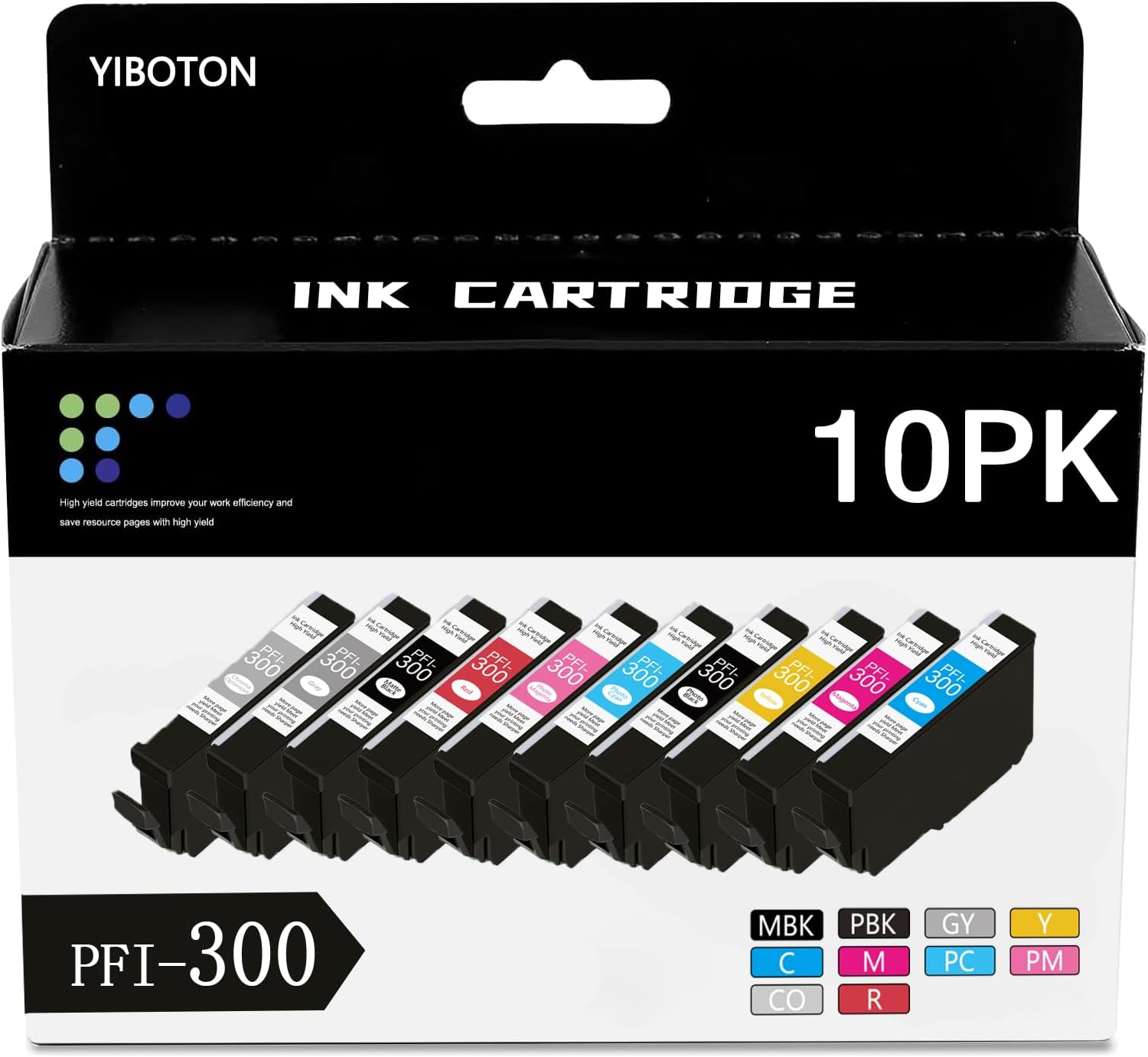 - Package Content: 10 Packs pfi300 Ink Cartridges. (MBK, PBK, C, M, Y, PM, PC, R, GY, CO)