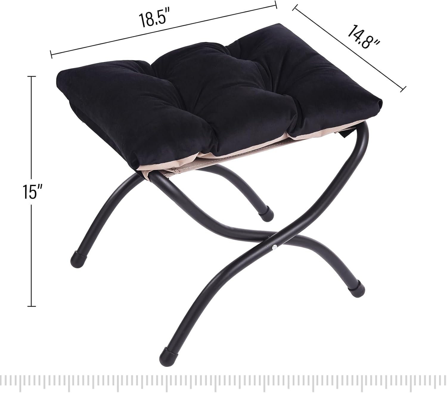 LITA Folding Upholstered Footrest Stool, Modern Small Portable Accent Ottoman with Detachable Thick Cotton Cushion Padded Sofa Stool with Metal Frame for Lazy Chair, Living Room & Bedroom, Black