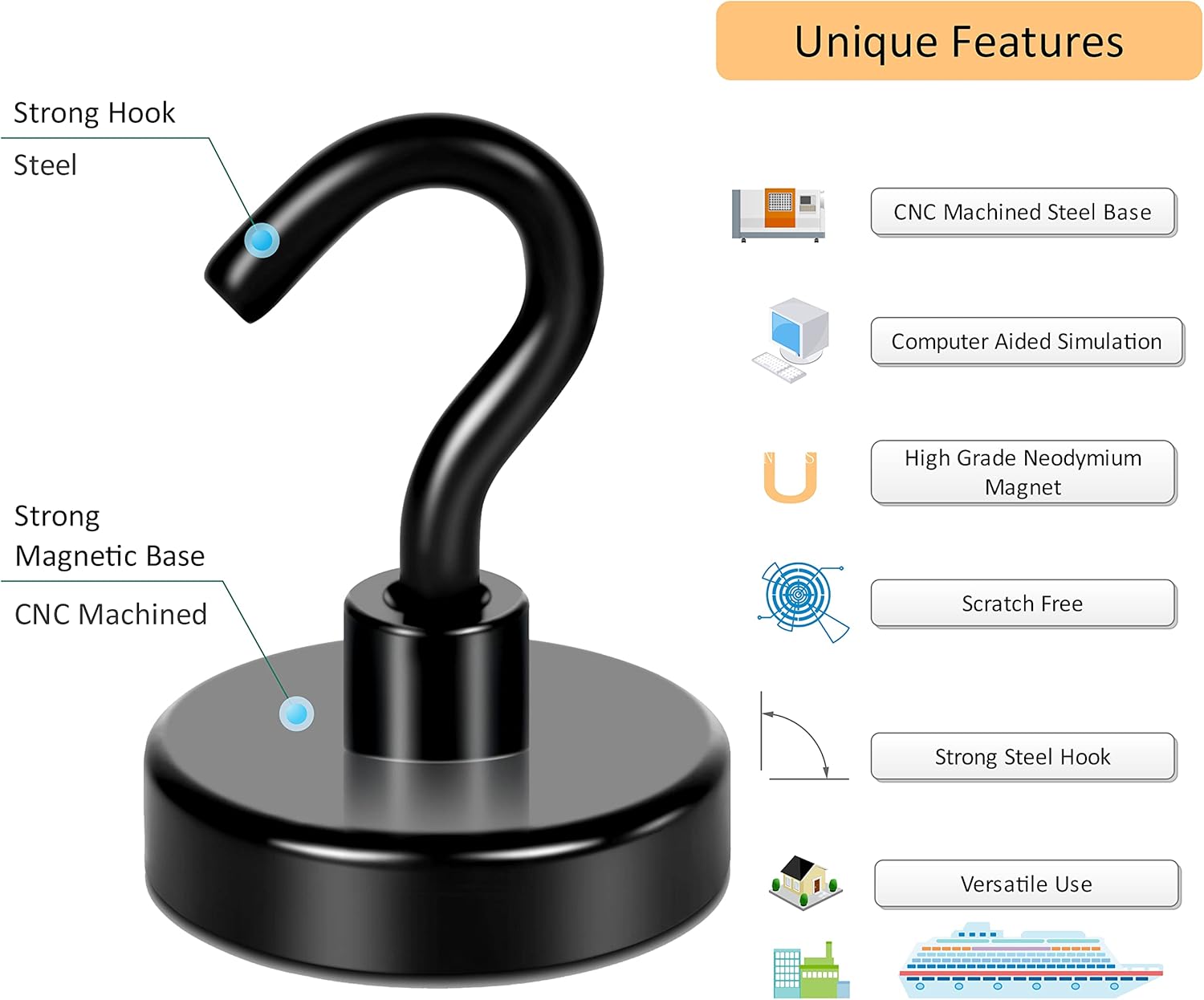 - ✔ VERSATILE USE- Neosmuk’s strong neodymium magnetic hooks were endowed with a strong capability for holding various items wherever there is iron or steel. This magnet hook is a perfect magnetic key holder. You can also hang your tools next to the toolbox with this magnetic hook. Our magnetic hooks are great for grill, pot, cup, utensils, and oven.