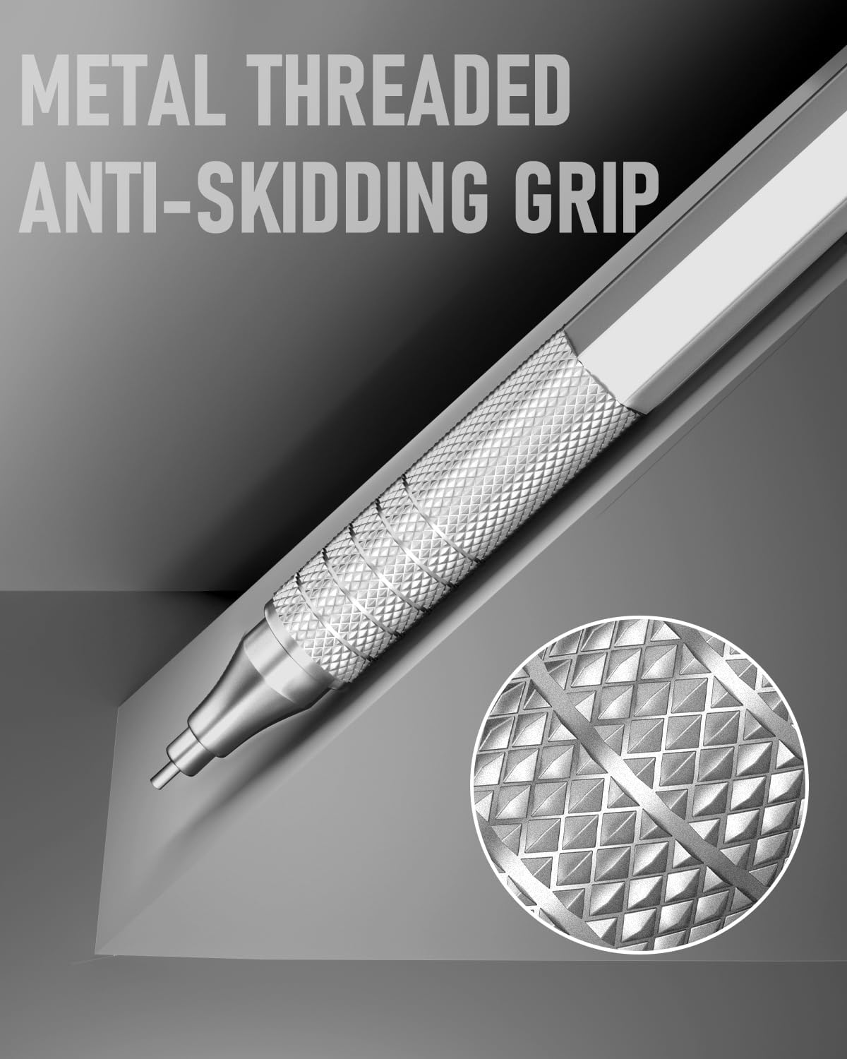 - Metal Threaded Anti-skidding grip: Metal grips with an anti-slip texture to ensure a secure and comfortable grip while writing or drawing, without causing fatigue.