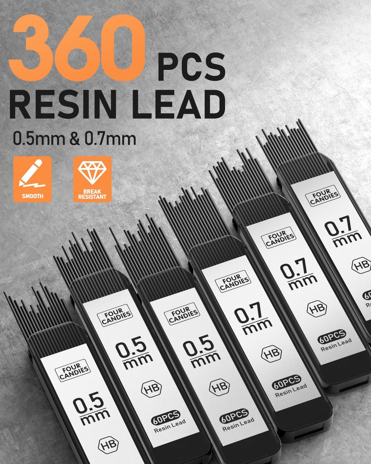 - 【360PCS Resin Lead】6 tubes of 60pcs super capacity leads. A more durable resin lead which doesn’t require sharpening and is not easy to break at the tip or break in the shaft, provides ultra-smooth writing and clear dark lines.