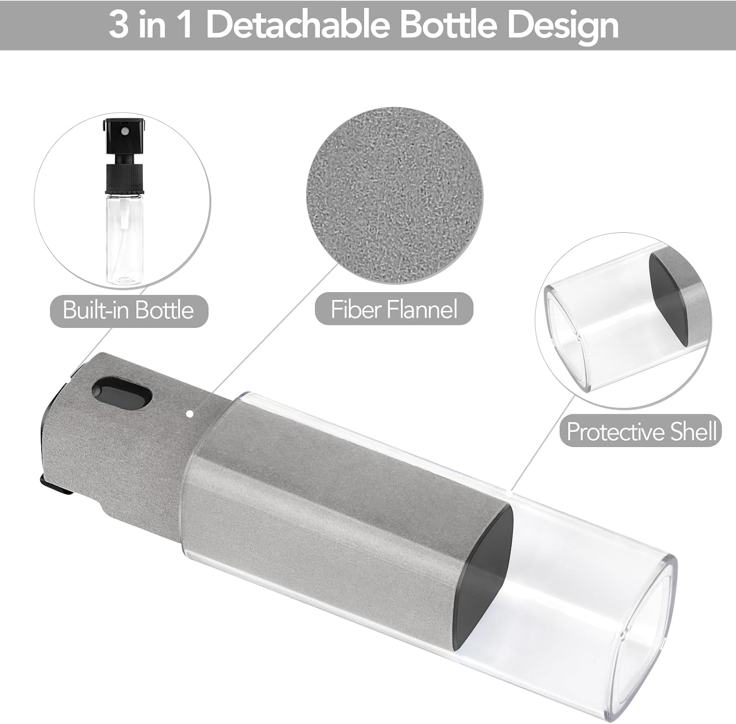 - 3 in 1 Multifunctional cleaner made of ABS transparent protective, a built-in bottle and microfiber wipe. Spray and wipe storage integrated