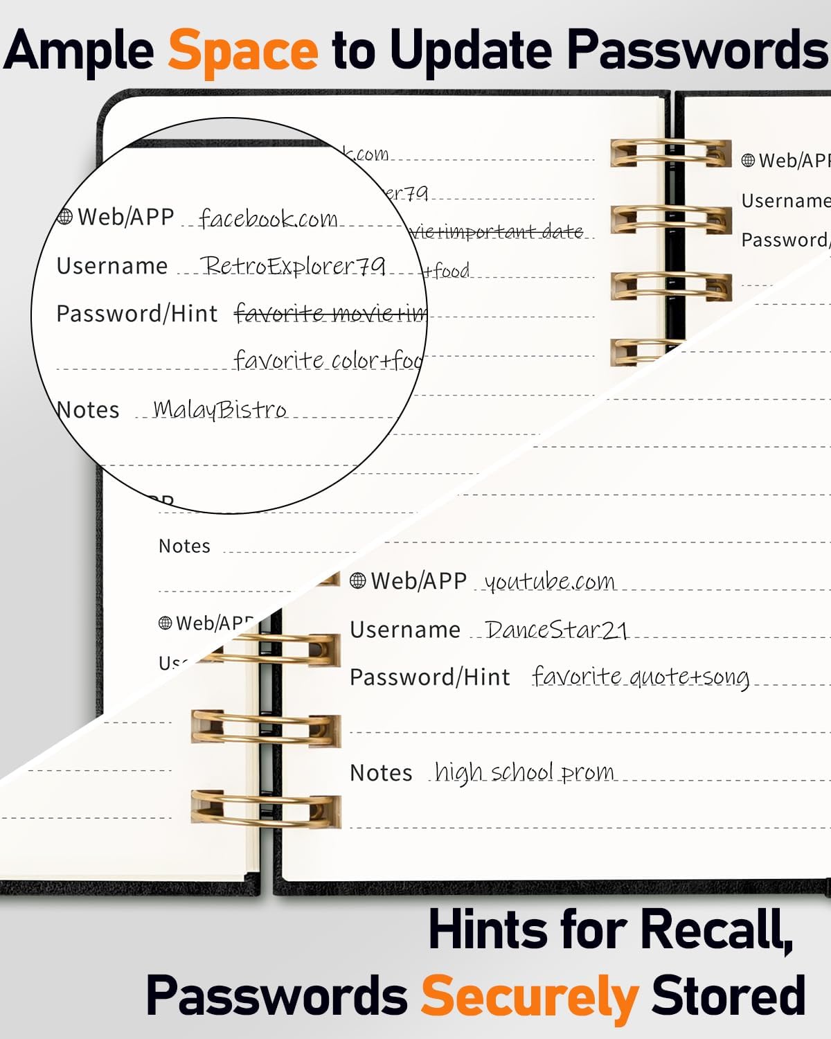- Never Forget Passwords Again: Record 468 passwords, with space for updates; Say goodbye to password woes! Secure Pass Keeper Book keeps you covered