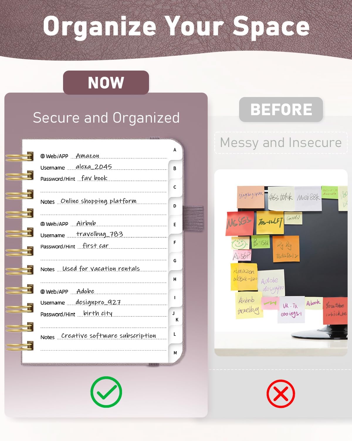- Enduring Vegan Leather: Exquisite Texture; 100 GSM Paper Resists Ink Bleed-through, Ensuring Long-lasting Value; Elevate Your Password Management