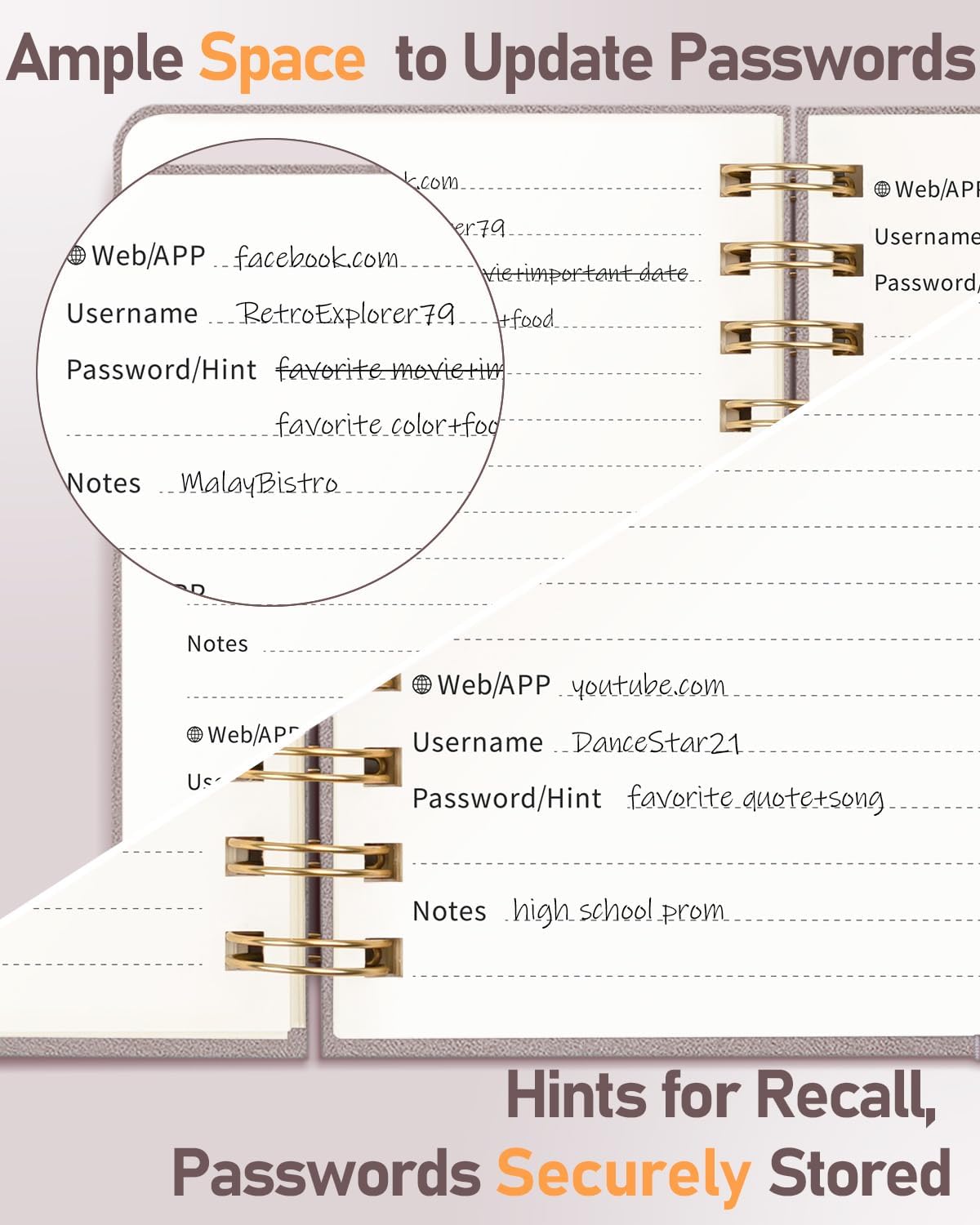 - Never Forget Passwords Again: Record 468 passwords, with space for updates; Say goodbye to password woes! Secure Pass Keeper Book keeps you covered