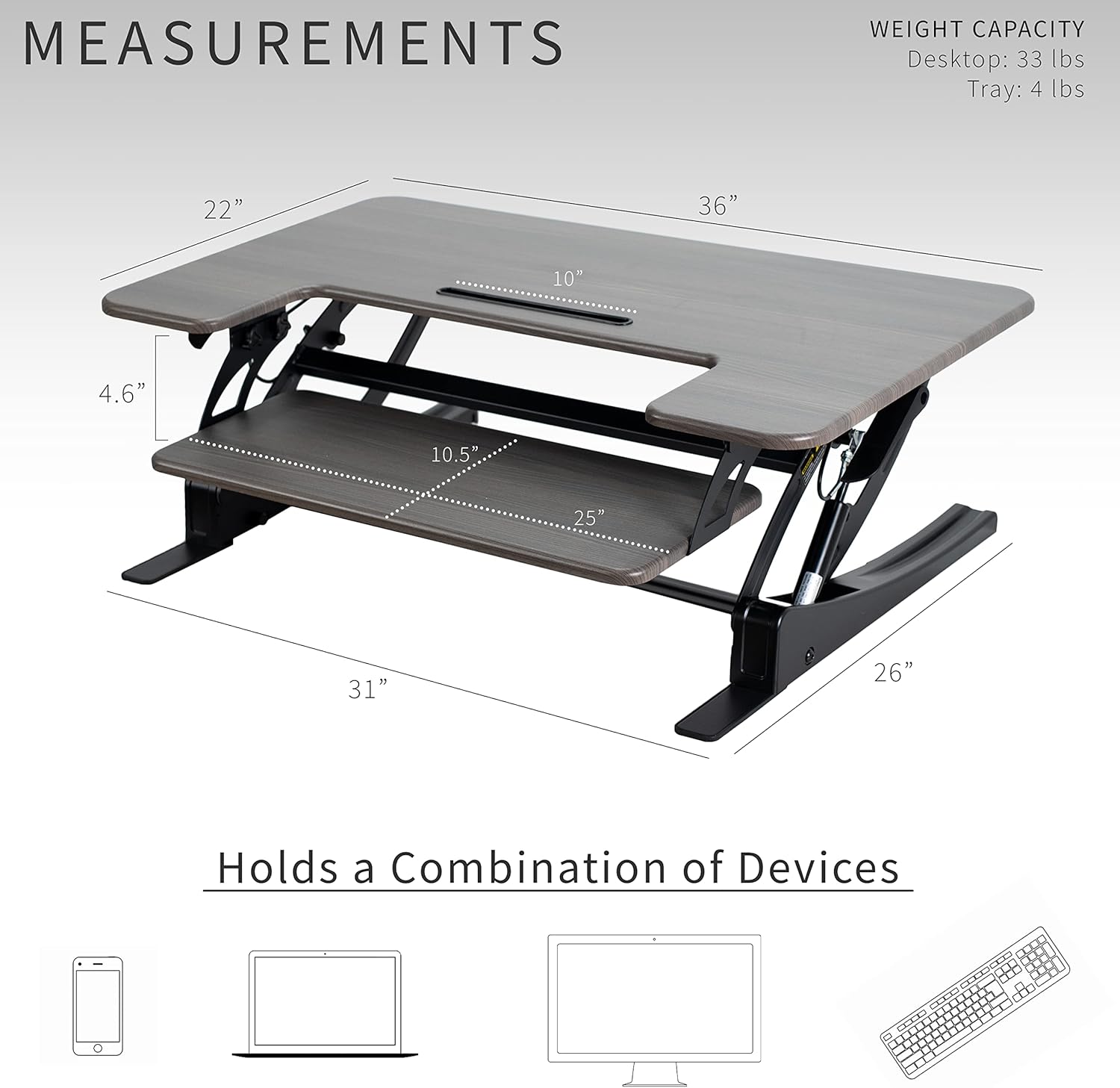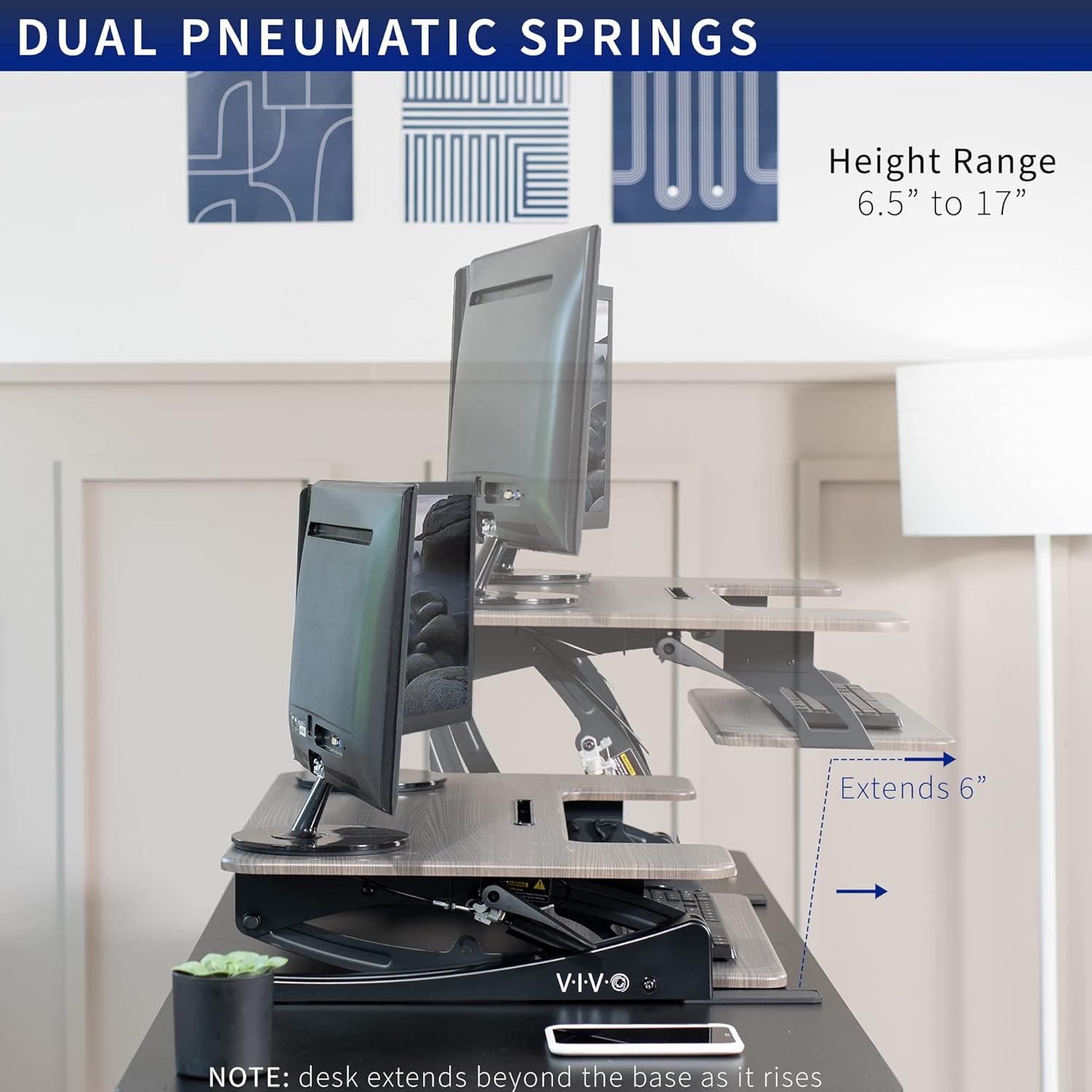 VIVO 36 inch Height Adjustable Stand Up Desk Converter, V Series, Quick Sit to Stand Tabletop Dual Monitor Riser Workstation, Gray Top, Black Frame, DESK-V000VG