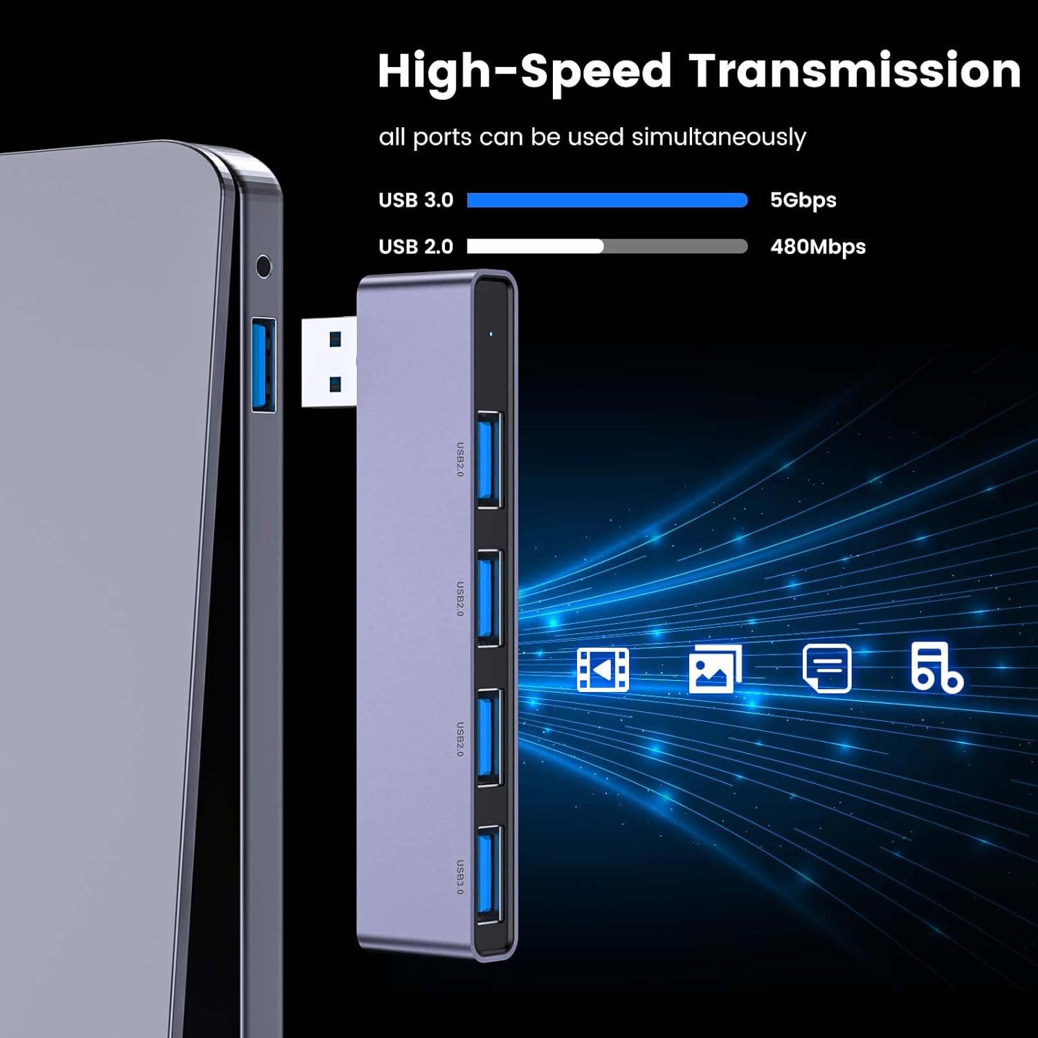 USB Hub, Fidioto 4-Port USB Hub(1 * 3.0 Hub, 3 * 2.0 Hub) USB Splitter for Laptop,Windows PC,Mac,Printer,Flash Drive,Mobile HDD, Notebook PC