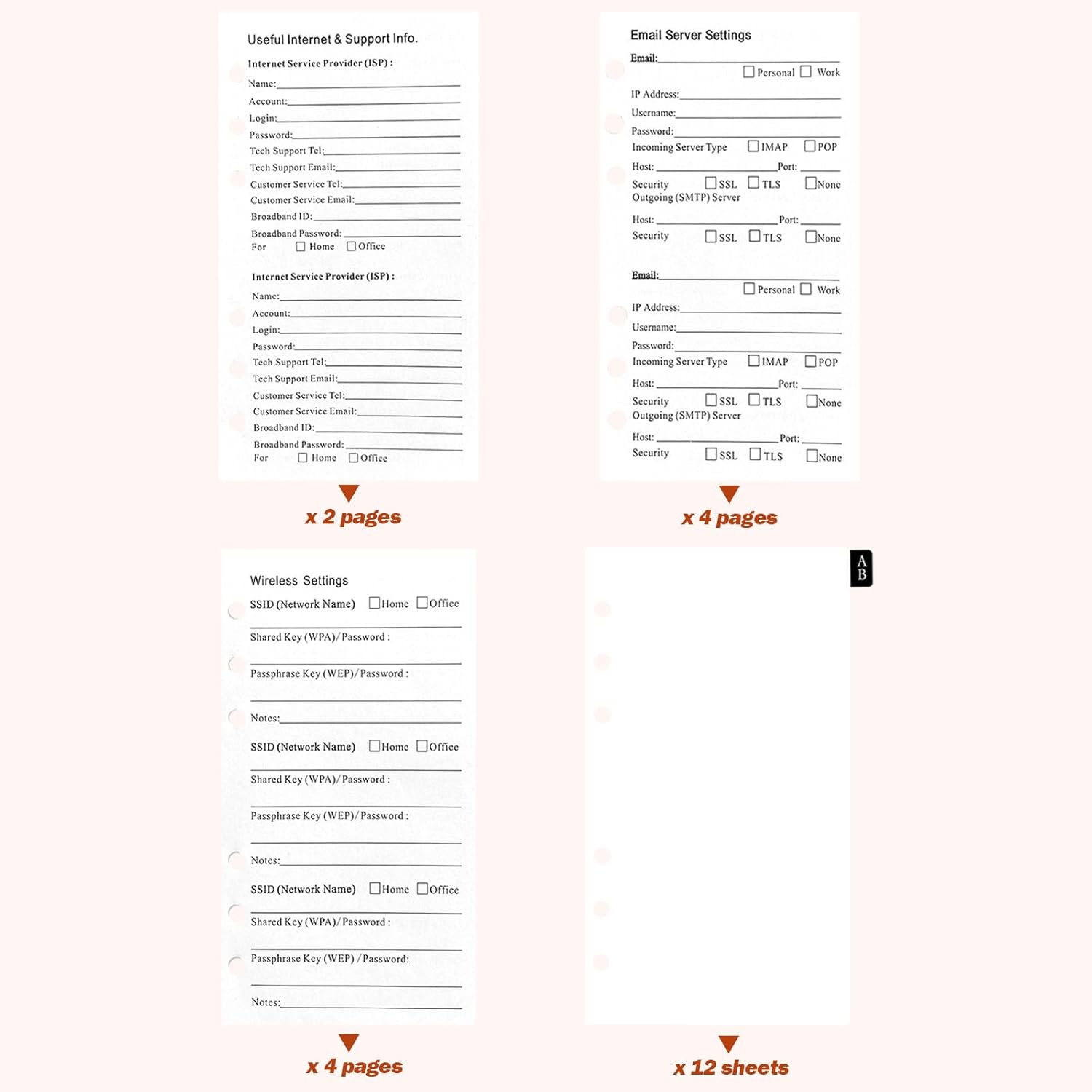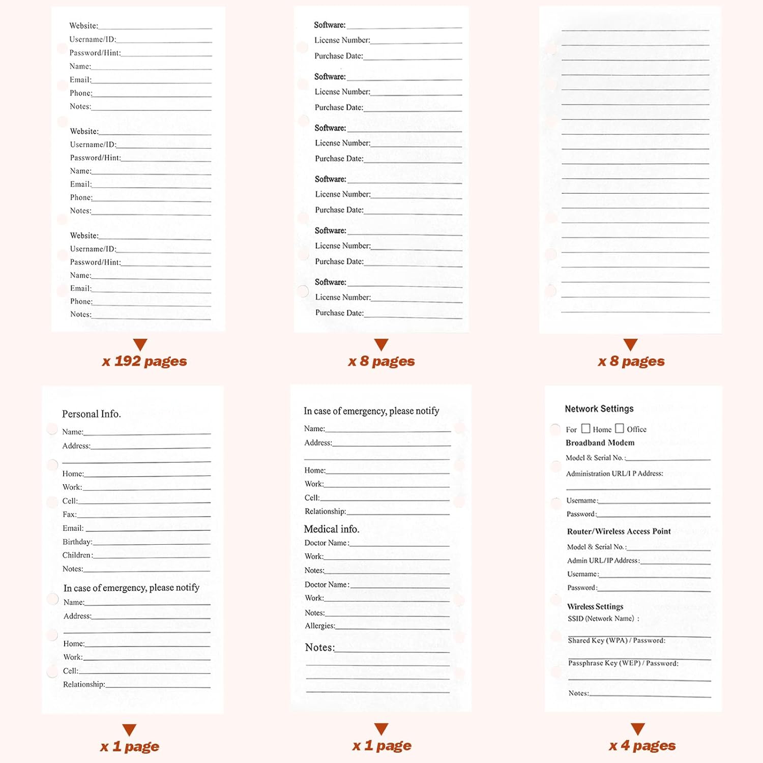 - User-Friendly Layouts: Designed to cater to all your internet needs, our password notebook allows to store up to 576 passwords, along with 48 records of licenses, and essential network, email, and wireless settings. It comes with extra lined pages for taking notes, using them for keeping track of security questions, hints, or any other relevant details. Stay organized and never miss an important detail again!