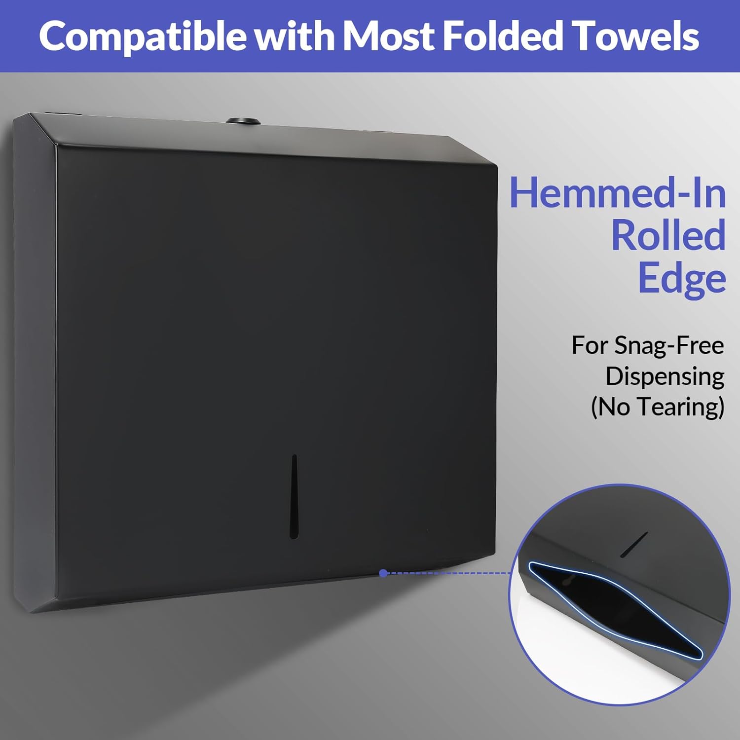 Paper Towel Dispenser Wall Mount, Matte Black Stainless Steel Commercial Paper Towel Holder with Lock, Large Capacity 250 C Fold/300 Multifold Towels